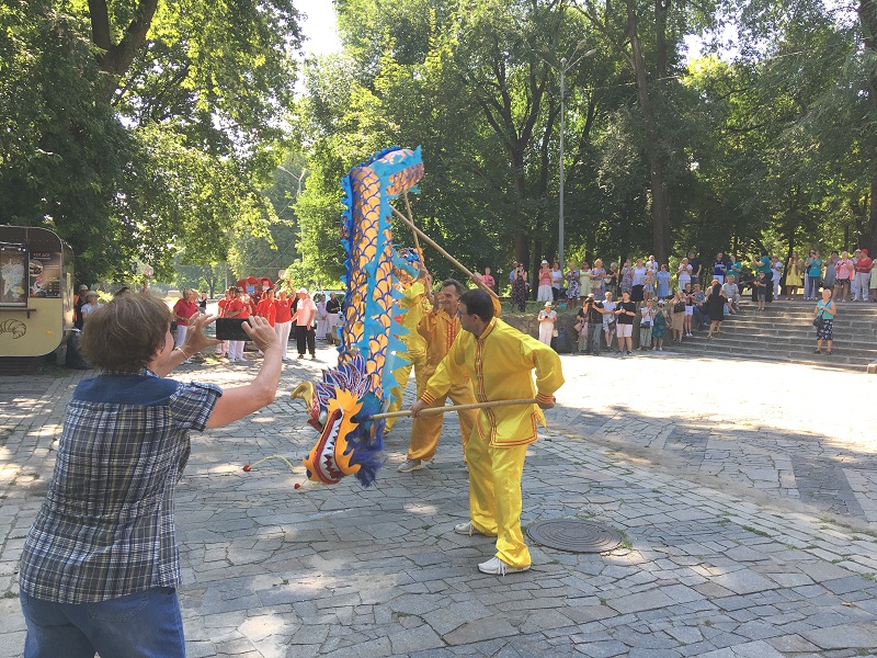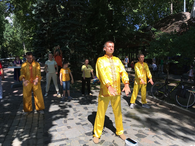 法轮功学员在健康节上引起了正在报道此次活动的当地电视台——第聂伯罗电视台的注意。他们报道了学员们的舞龙表演。伴随着铿锵有力的鼓点,学员们的舞龙表演令观众印象深刻,许多人从未见过如此壮观的景象。观看舞龙表演的瓦伦蒂娜说:“这非常非常优美。”