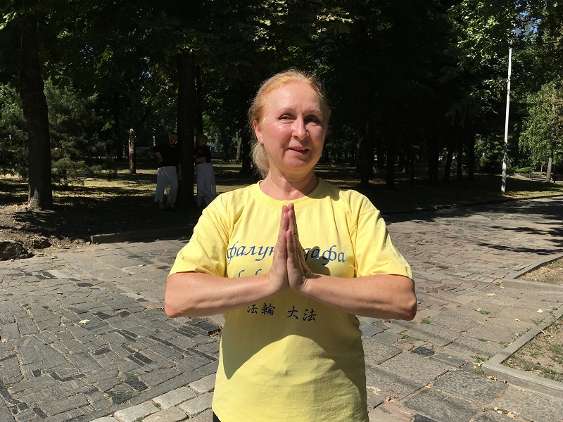 法轮功学员玛丽娜很高兴看到乌克兰人踊跃学炼法轮功。她说:“我修炼法轮大法已经八年了。我来参加今天的活动是为了告诉更多的人这一自我提升的修炼法门,因为法轮大法对我来说非常重要。我非常重视这一点。”