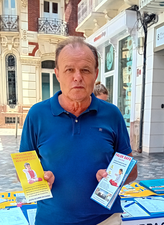来自马德里的碧翠丝(Beatriz)女士正在卡塔赫纳市度假。她说:“我了解中共迫害和对法轮功学员活摘器官的情况,在中国没有人权和信仰自由。而在西班牙可以有信仰自由。有信仰的人是值得尊敬的。”
