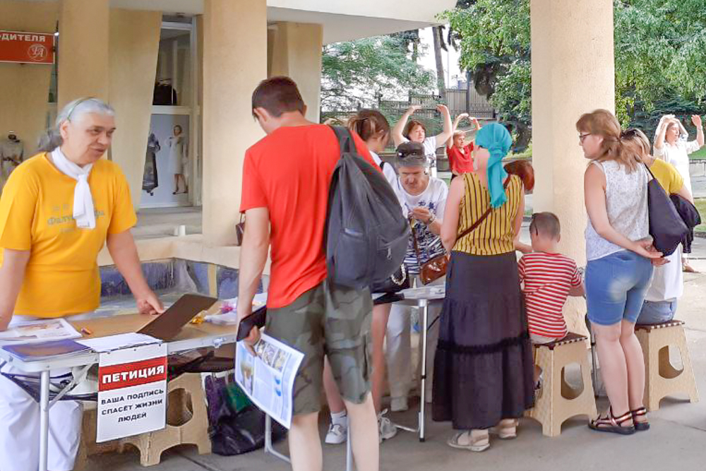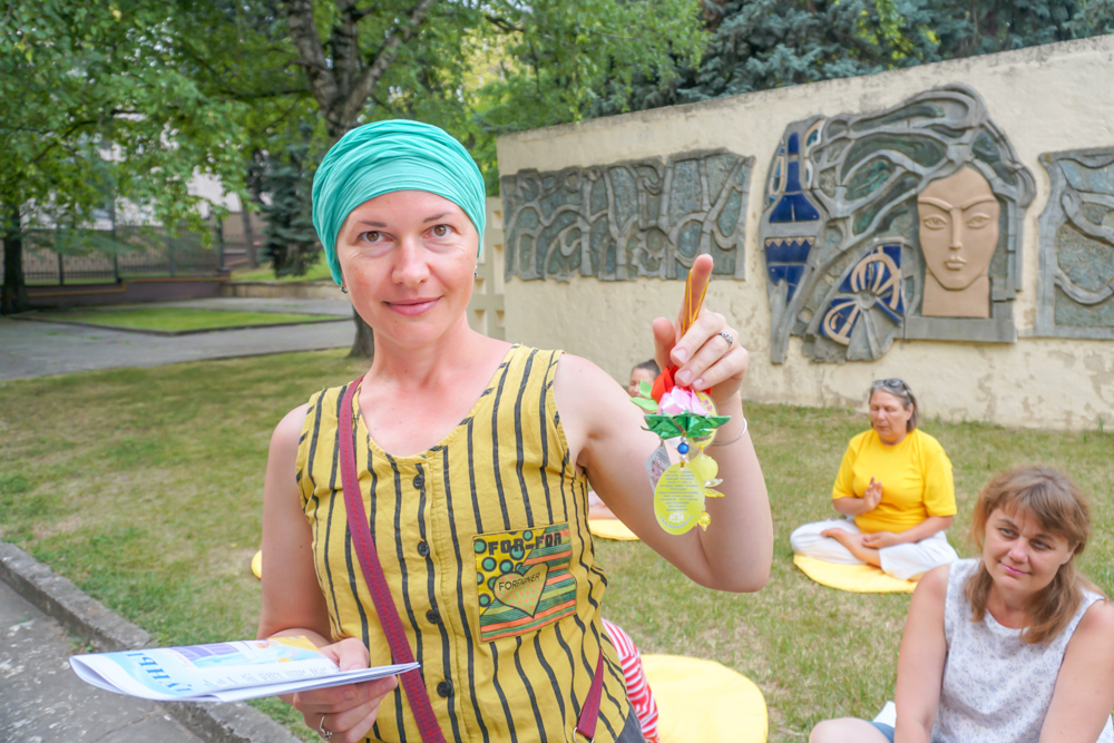 当天,来自下诺夫哥罗德(Nizhny Novgorod)的安娜正在皮亚季戈尔斯克度假。她很高兴了解到法轮大法真、善、忍的法理,她深受触动。她说:“愿真、善、忍这三个字拯救我们的世界,拯救人类,(我)反对中共对这些光明、善良的人们的迫害。”