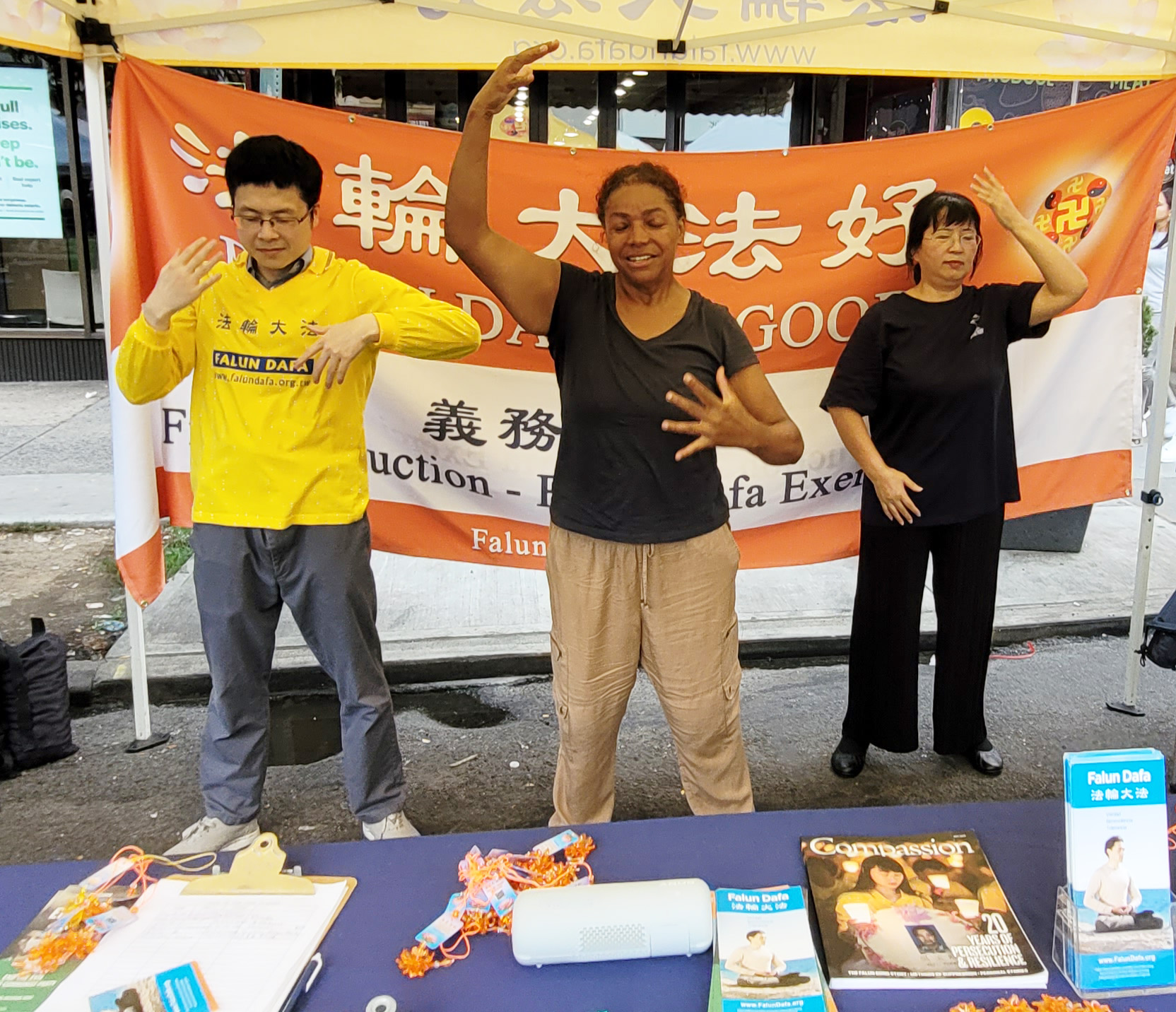 加西亚·伊达尔戈(Garcia Hidalgo)就在附近的药店上班。她看到法轮功学员就停下来和她们聊天。加西亚此前没有听说过法轮功,她说,这是很好的功法,还表示想继续了解更多。加西亚还希望帮助法轮功学员制止中共的迫害。