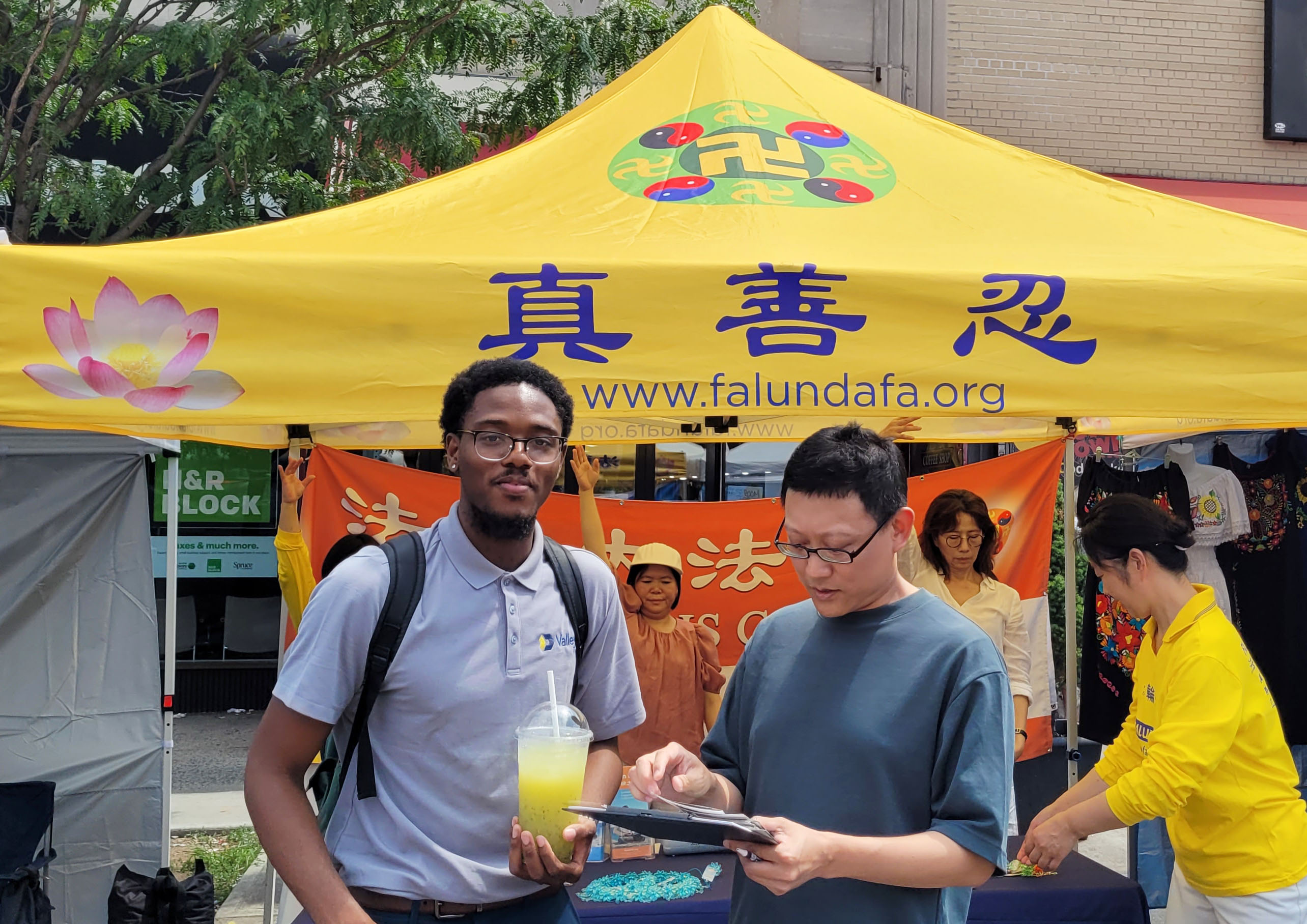 克里斯和他的妻子在法轮大法展位前驻足,了解了在中国发生的对法轮功的迫害和中共活体摘取法轮功学员器官牟取血腥暴利时,克里斯说:“这个世界上每天都有不好的事情发生,但是法轮功学员的遭遇太悲惨,太不幸,这样的迫害真是太邪恶!”