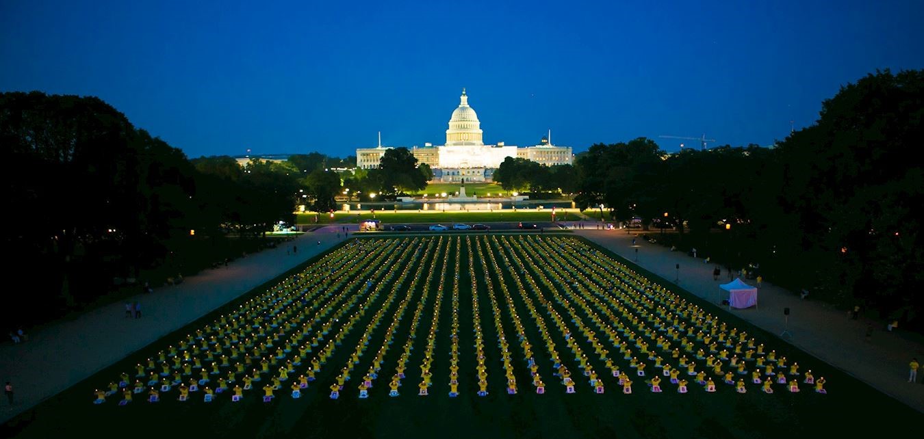![]() 图2:二零二三年七月二十日晚间,一千五百多名法轮功学员聚集在美国国会山与华盛顿纪念碑之间的国家大草坪上举行烛光夜悼。 |