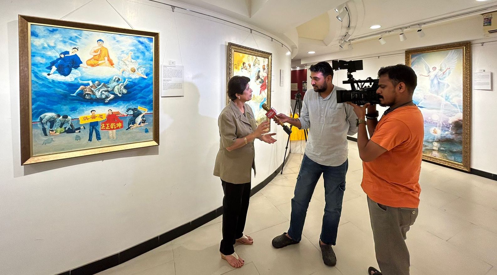 ![]() 图5:Aaj Tak电视台报道了孟买杰汉吉尔艺术画廊的“真善忍国际美展”。 |