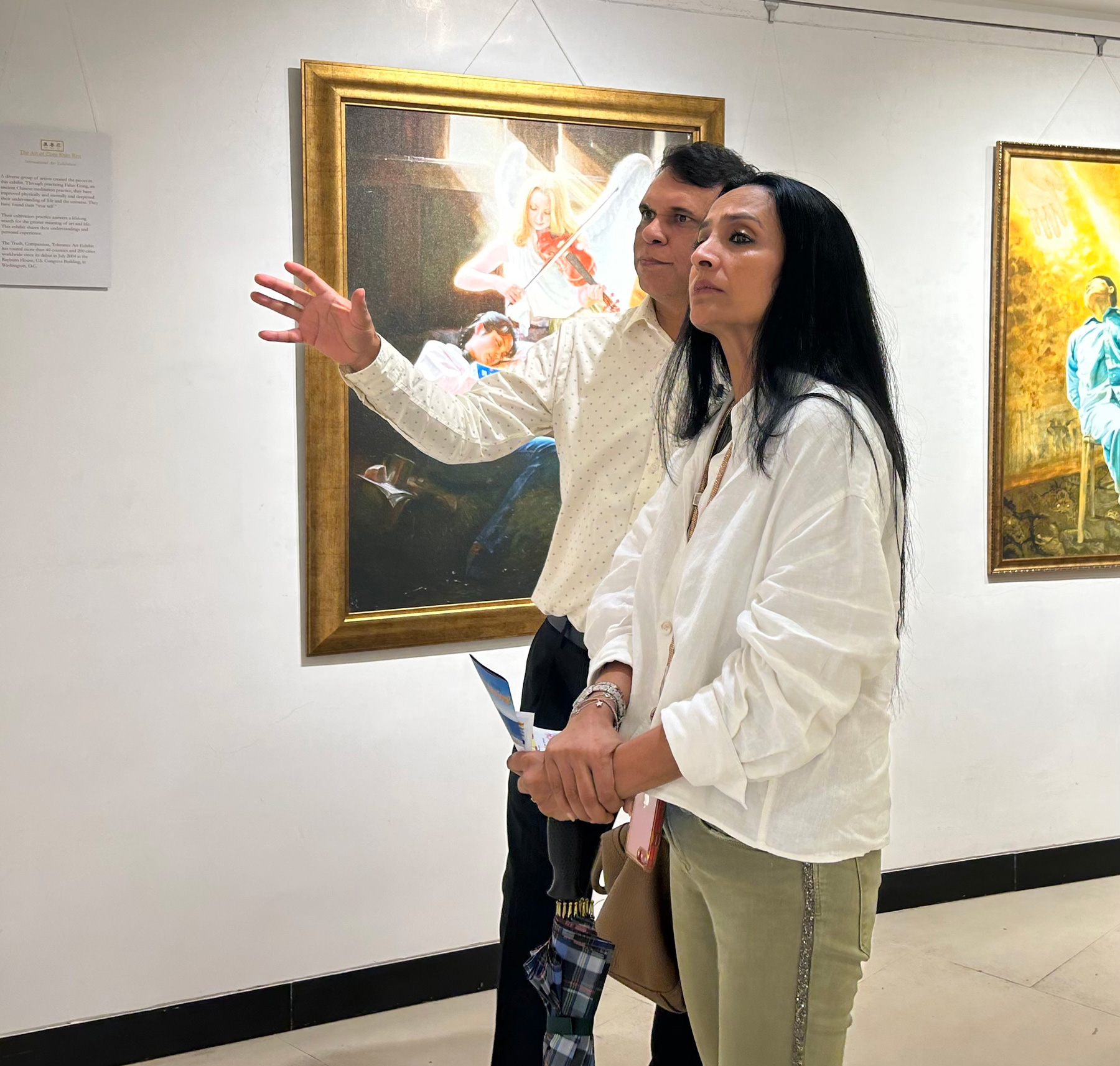 安德烈娅・克维克沙(Andrea Kevichusa)是来自印度东北部的一名模特和演员。她参观了展览,并且被作品中展现的善与恶的主题深深地感动。她说:“(观看这些作品后)我脑海中浮现的一个词就是正义,而那些坚持真善忍的人因为他们的信仰而遭受(中共的)迫害。”