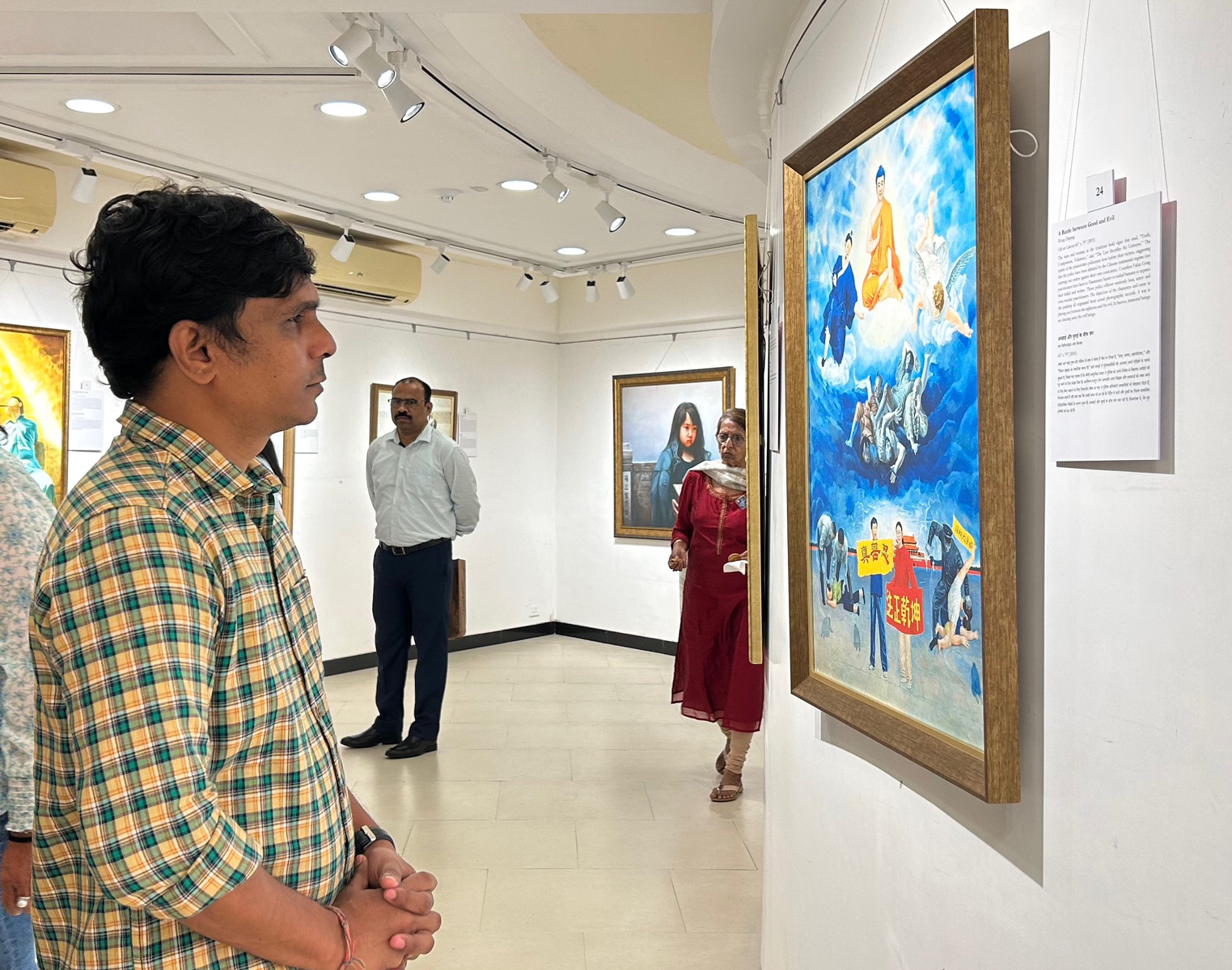 桑迪普・盖夸德(Sandeep Gaikwad)是一名在当地马拉地语电影的演员。他说这个画展“很美”,他对法轮功学员的苦难感到同情:“这些美丽而善良的修炼人在过去的二十四年中遭受迫害,真是令人悲伤。所有的作品都让我非常感动,因为法轮功学员尽管受到(中共)残酷的迫害,却没有放弃他们的信仰,这展示了更高层次的忍耐。”