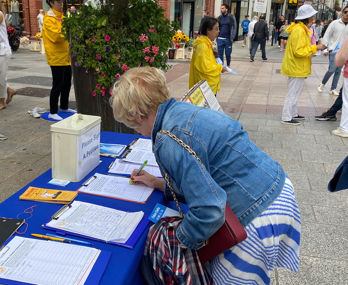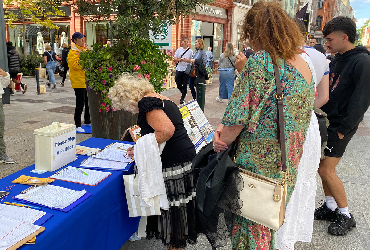 ![]() 图1:二零二三年七月,法轮功学员在都柏林市中心传真相 |
