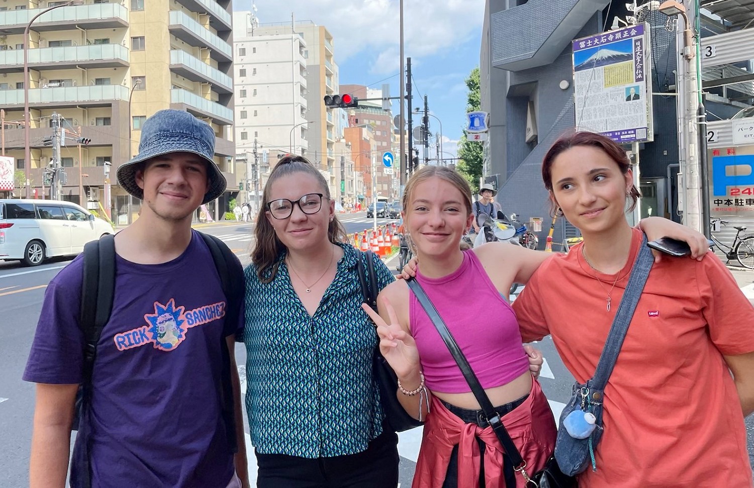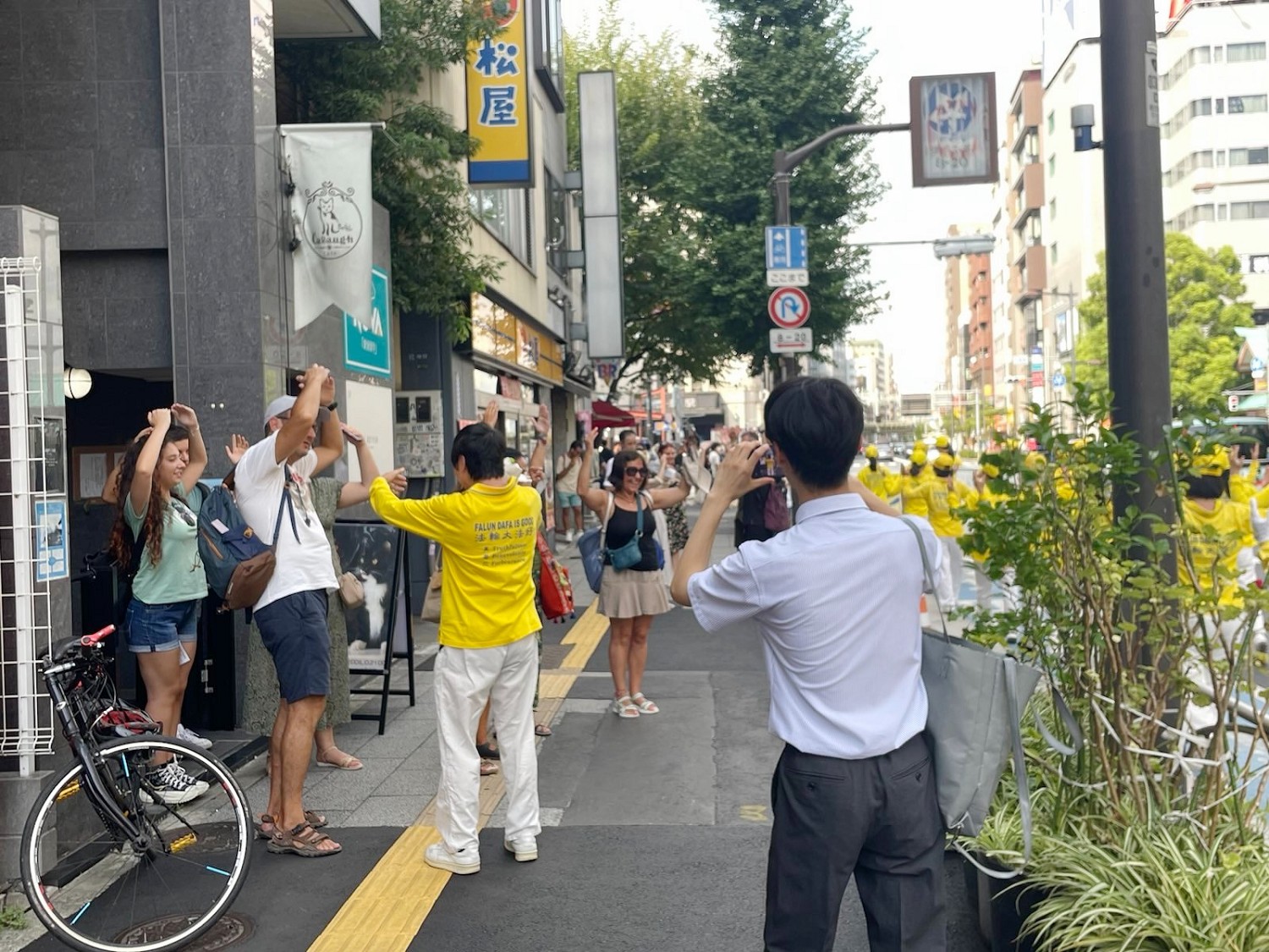 来浅草散步的野口先生用汉语对学员说:“加油法轮功。”