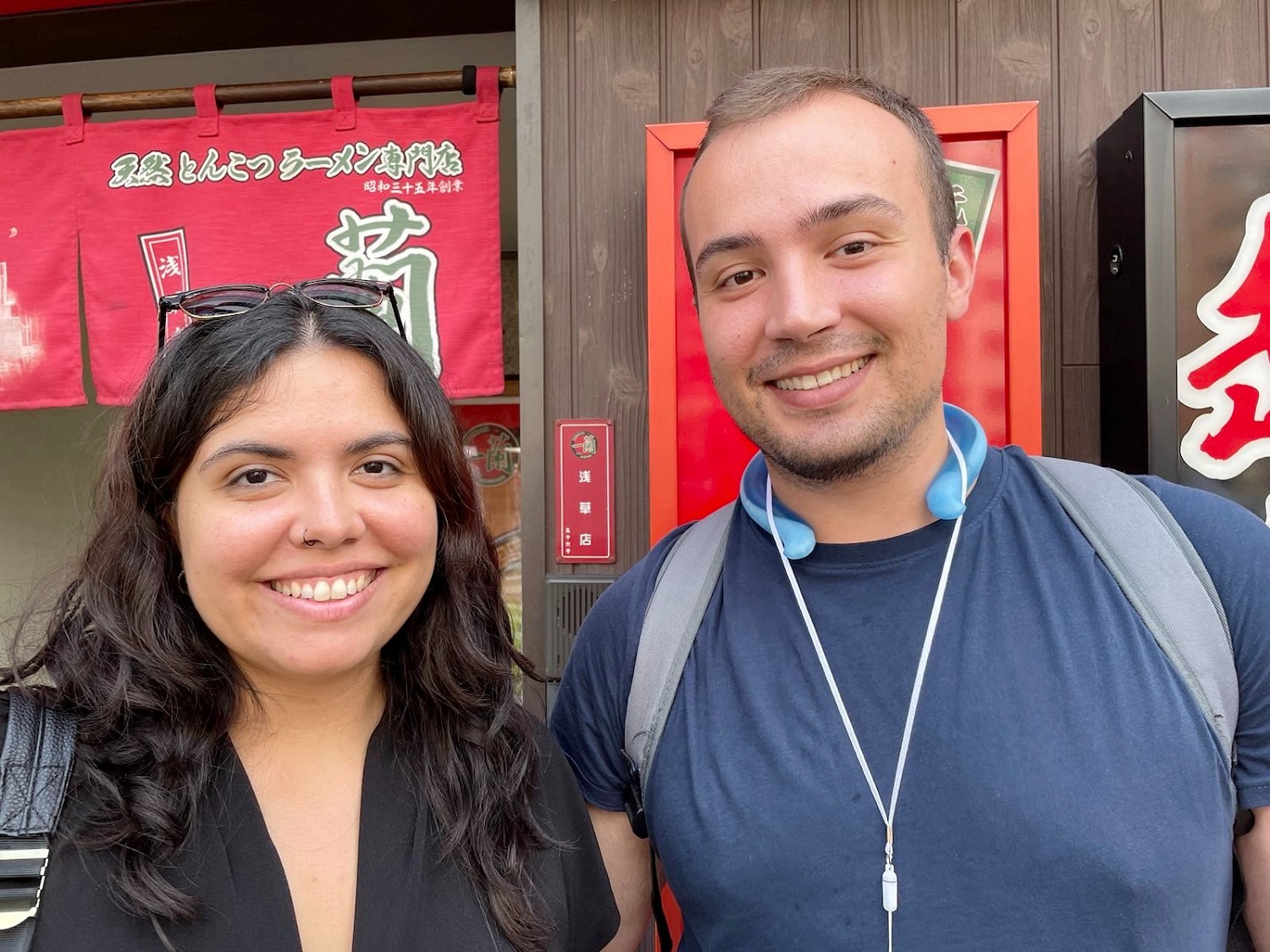 从浅草寺观光回来的越南人LIN先生和印度尼西亚来的EKA女士在花川户公园接到《明慧简报》后说回去后会好好阅读。