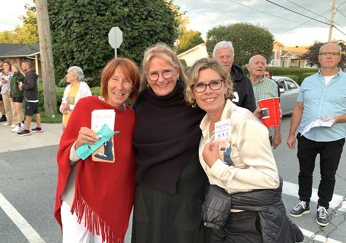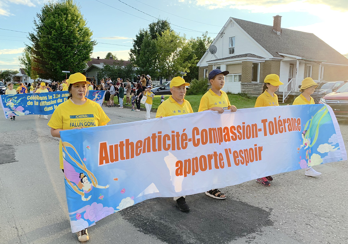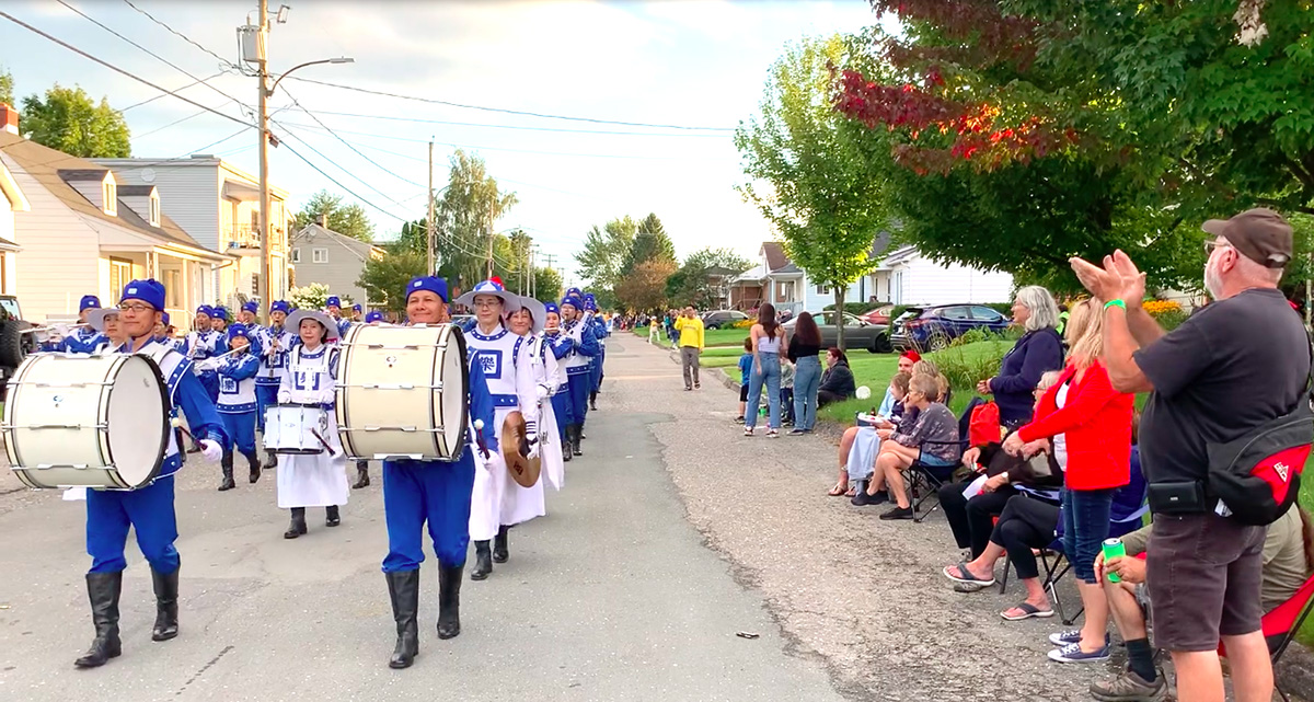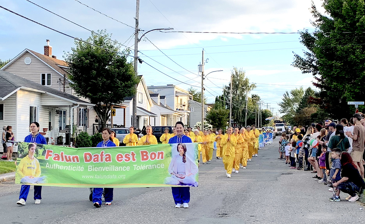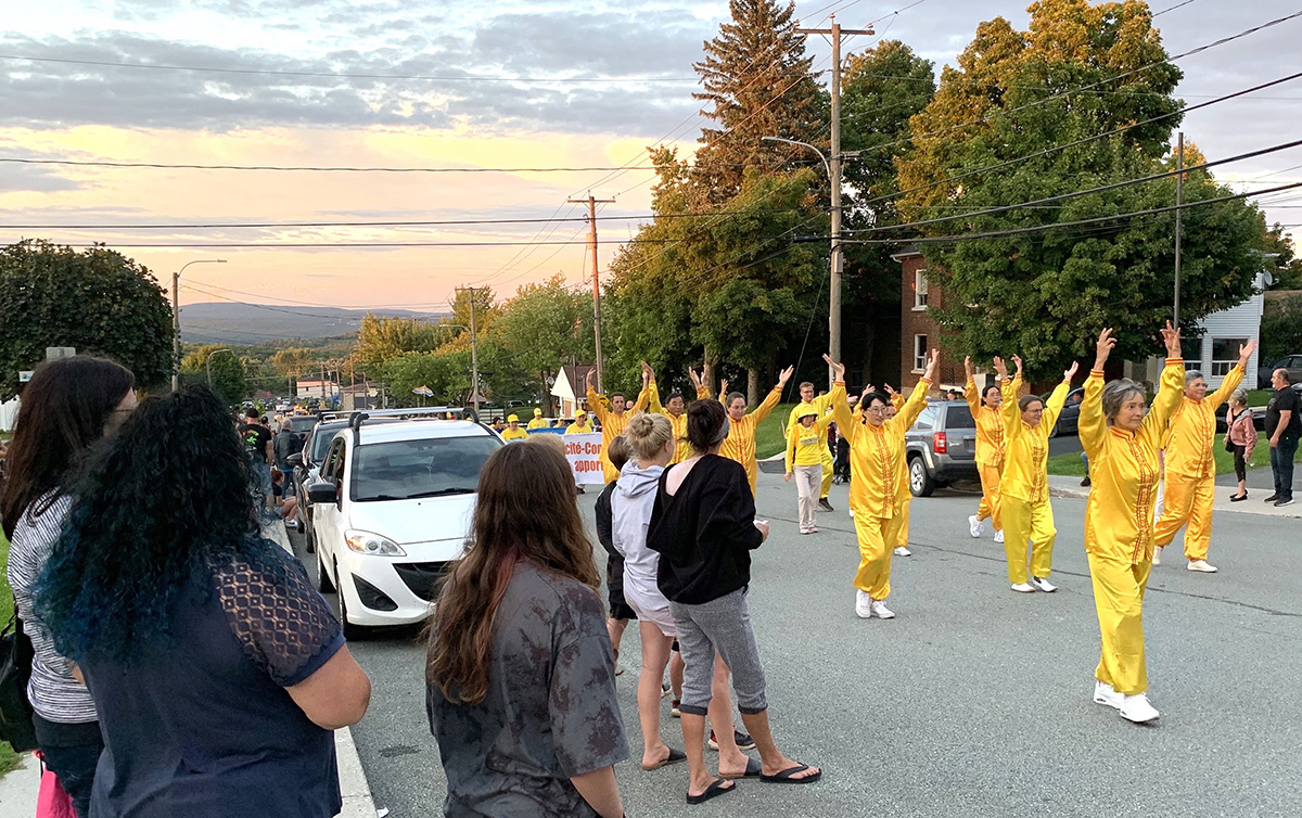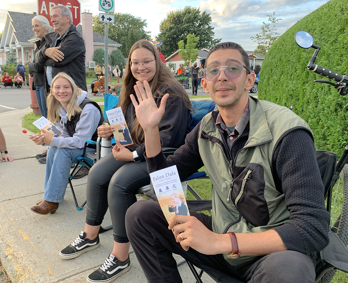 索尔斯山谷地处魁北克广褒的乡村地区,当地许多人第一次听到法轮大法。当以天国乐团、功法展示、横幅队伍组成的队伍经过时,人们的脸上流露出欣喜,相互询问,这支队伍来自哪里,这是什么功法。很多人接过法轮大法的传单,开始阅读。