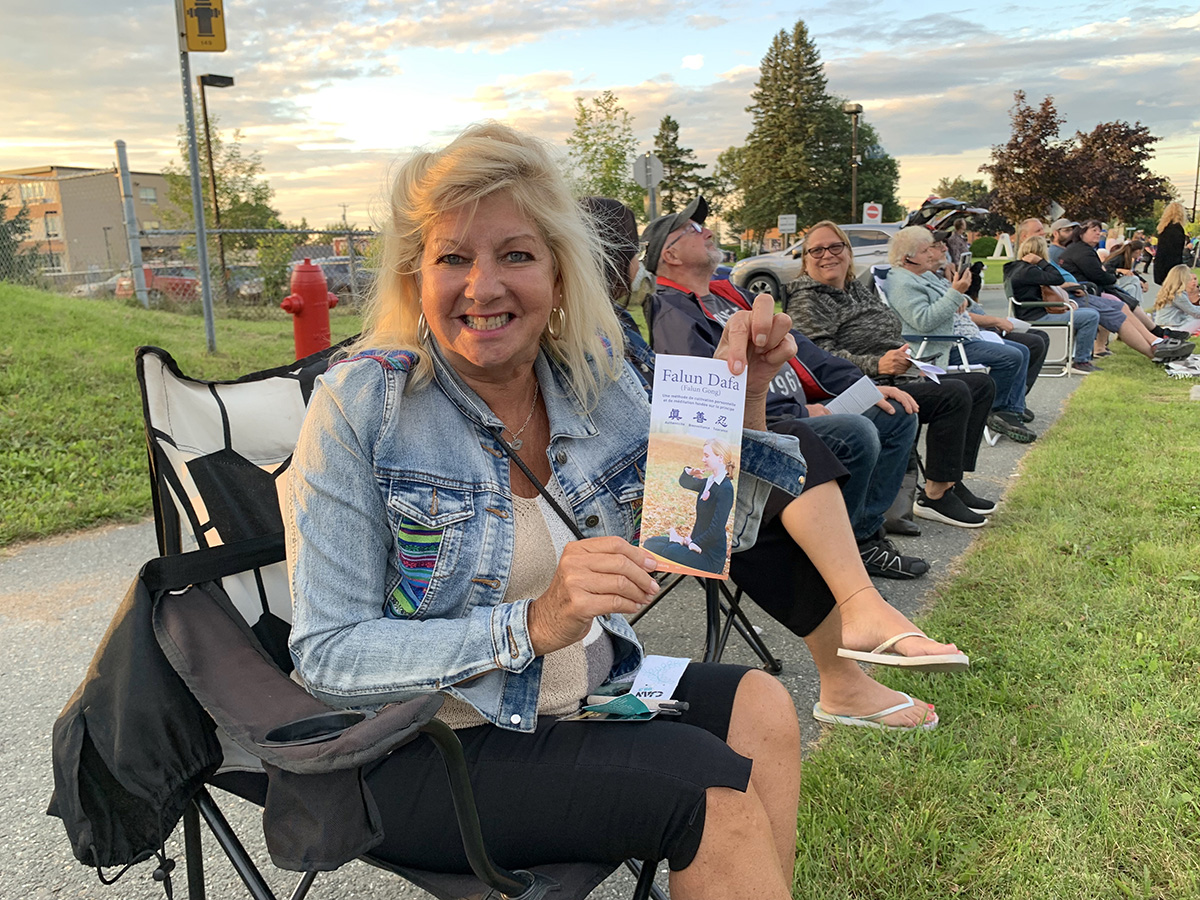 居民卡隆(Diane Caron)很喜欢法轮大法的队伍,特别是功法展示,她竖起了大拇指,“超级棒,他们是整个游行中最美的队伍”。