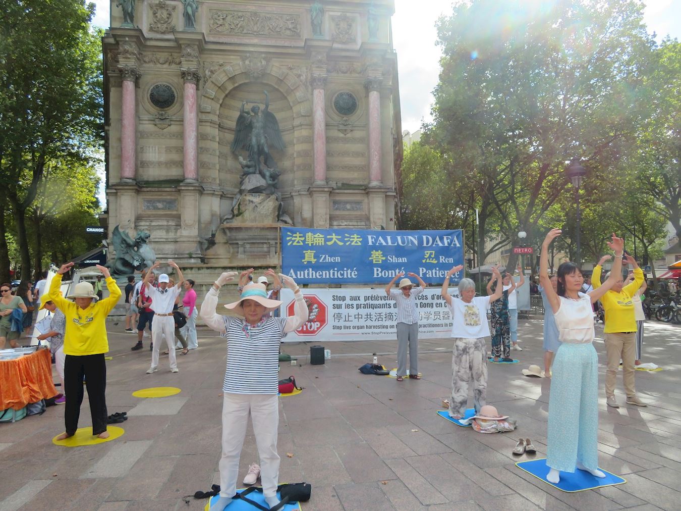 ![]() 图1~2:二零二三年八月二十日星期六,法轮功学员在巴黎圣米歇尔广场向民众进行演示功法。 |