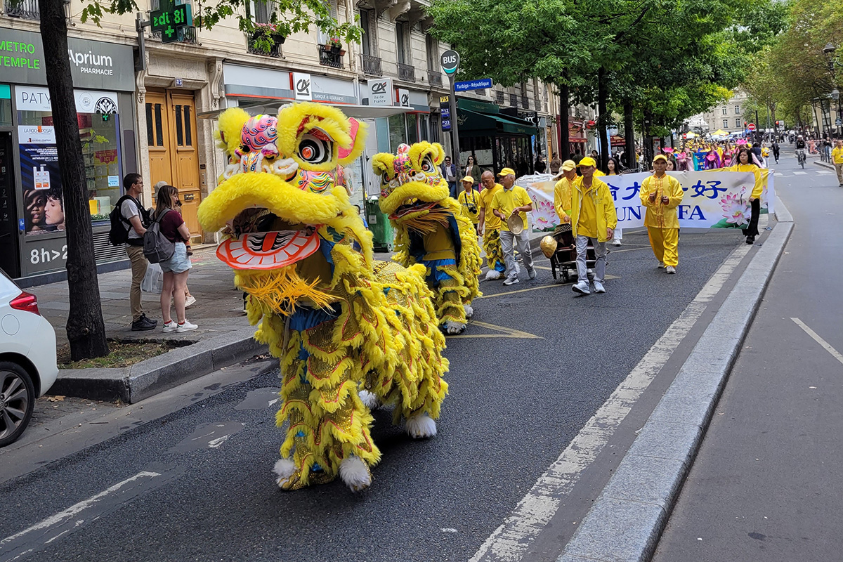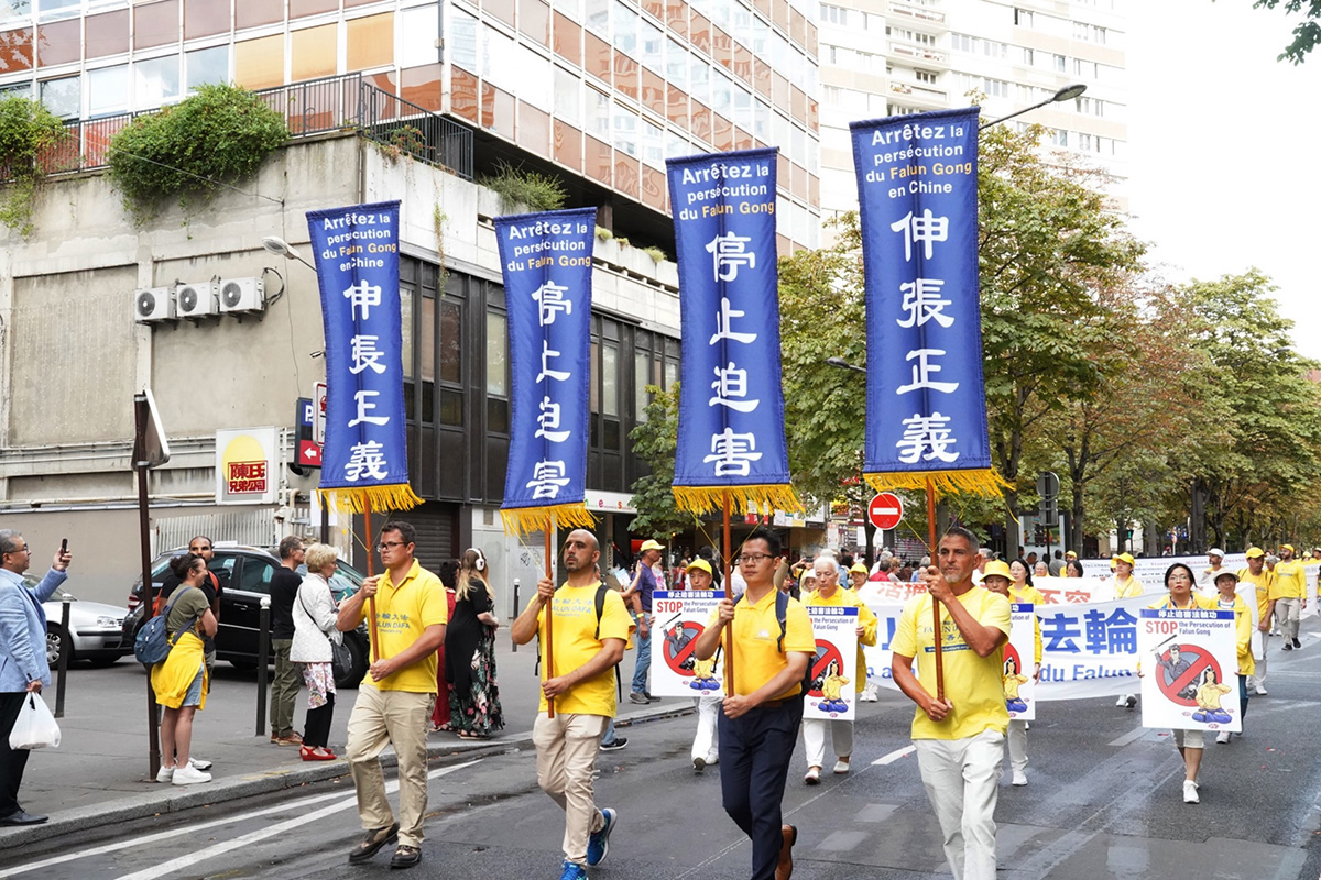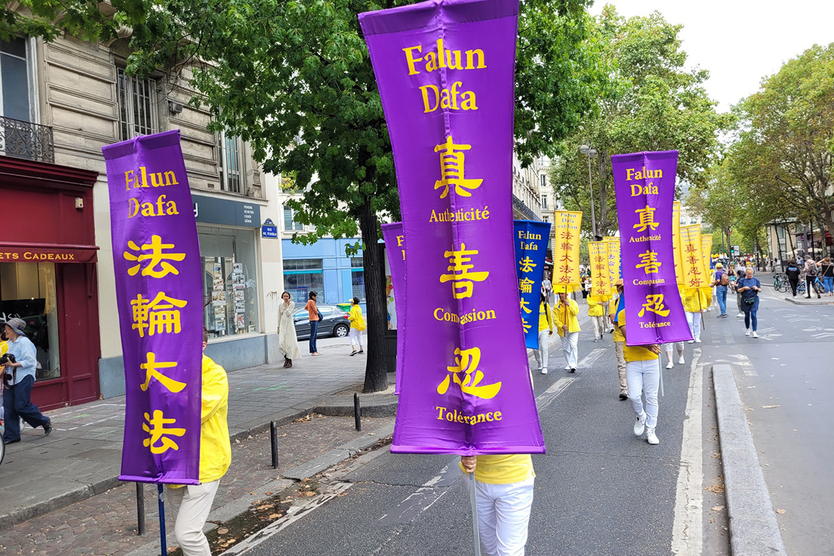巴黎退休教师吉勒-波蒂埃(Gilles Pottier)看到法轮功学员的游行队伍没有警察来维持秩序,感到非常惊讶。他觉得法轮功学员的信仰非常好,说:“真、善、忍是非常美好的价值。”