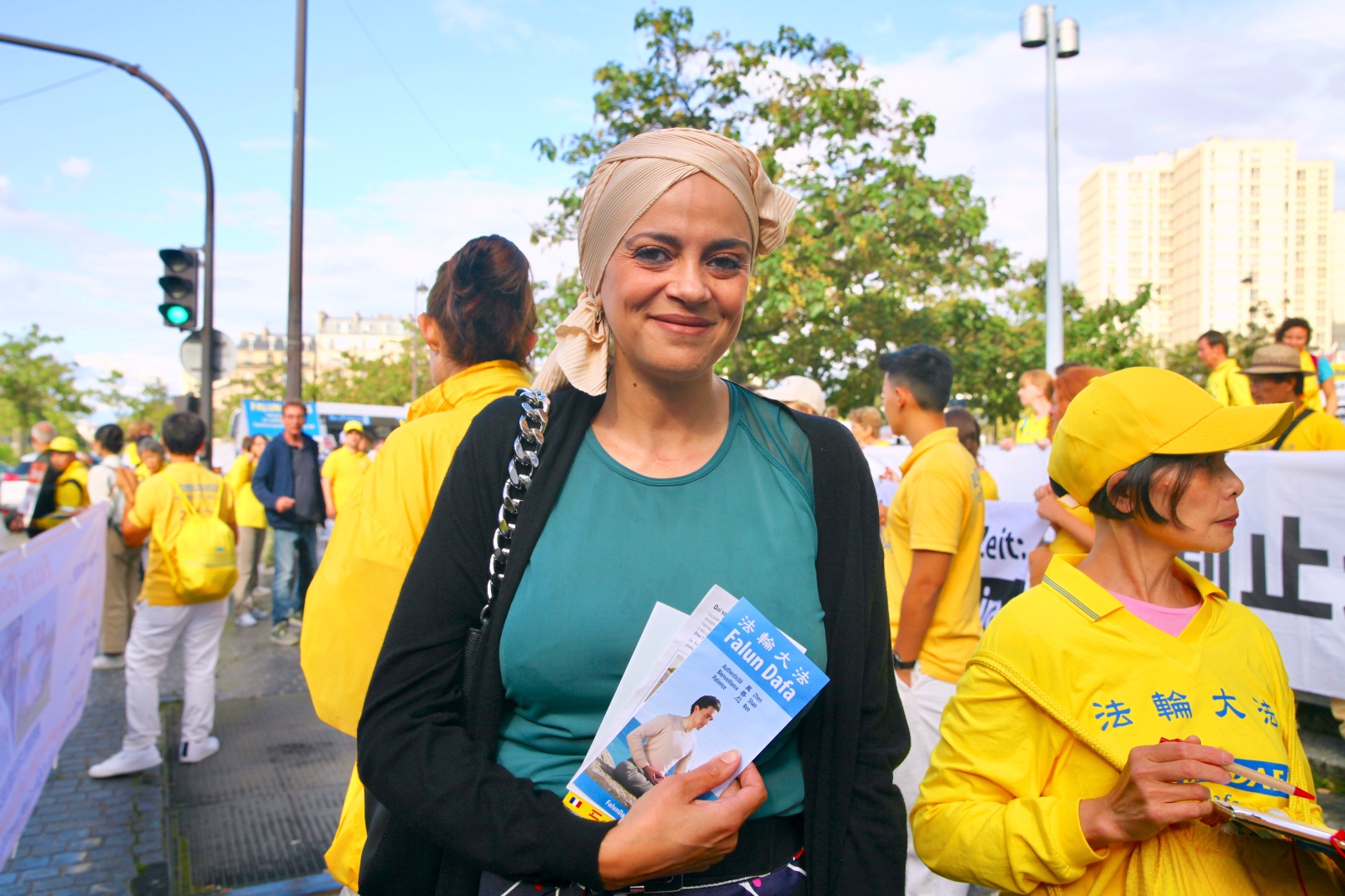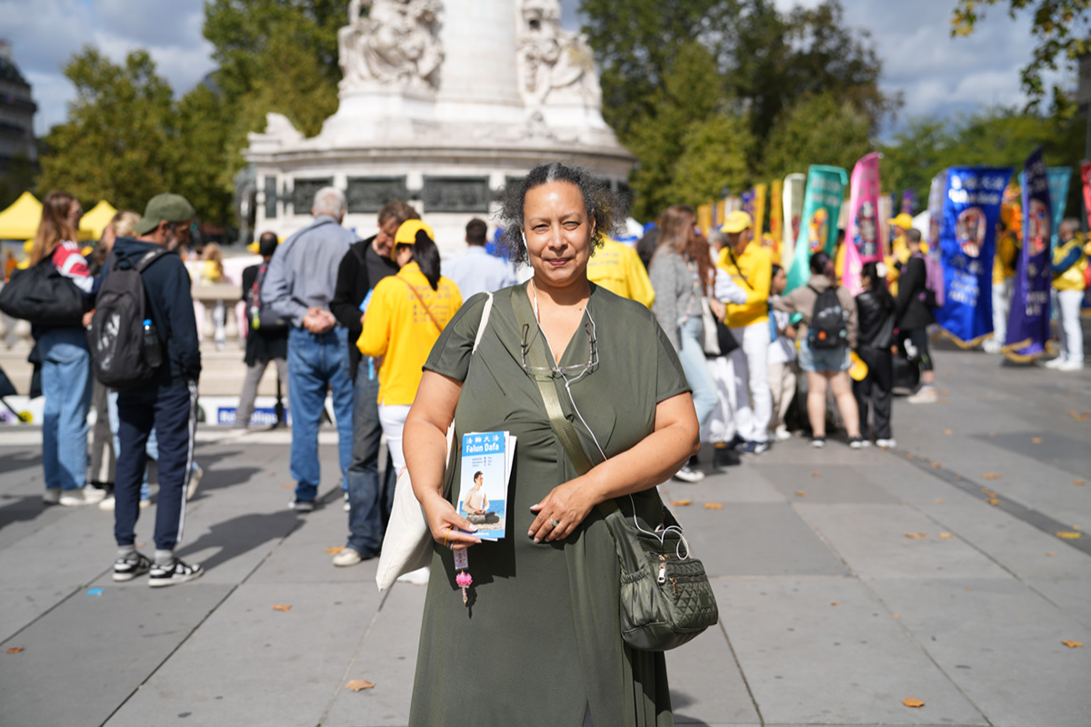 瓦莱丽·迪亚蒙卡(Valérie Diamonka)是法国政府公务员,从事社会保障行政管理工作。她仔细阅读着法轮功传单和关于中共活摘法轮功学员器官的信息。当得知法轮大法真、善、忍是指导和归正修炼人的准则后,她说:“我觉得这真的是太好了。”