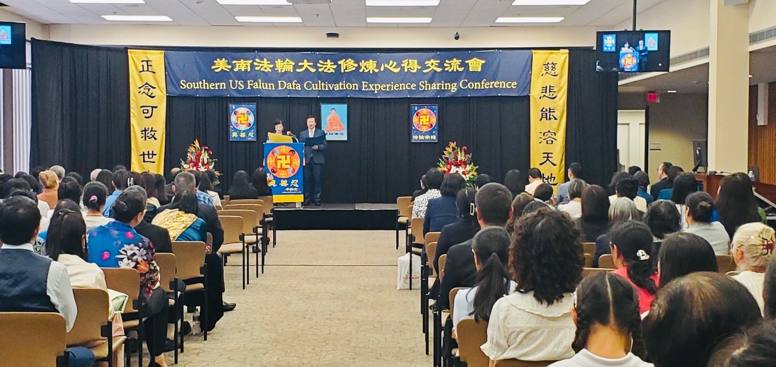 ![]() 图1:二零二三年美南法轮大法修炼心得交流会现场 |