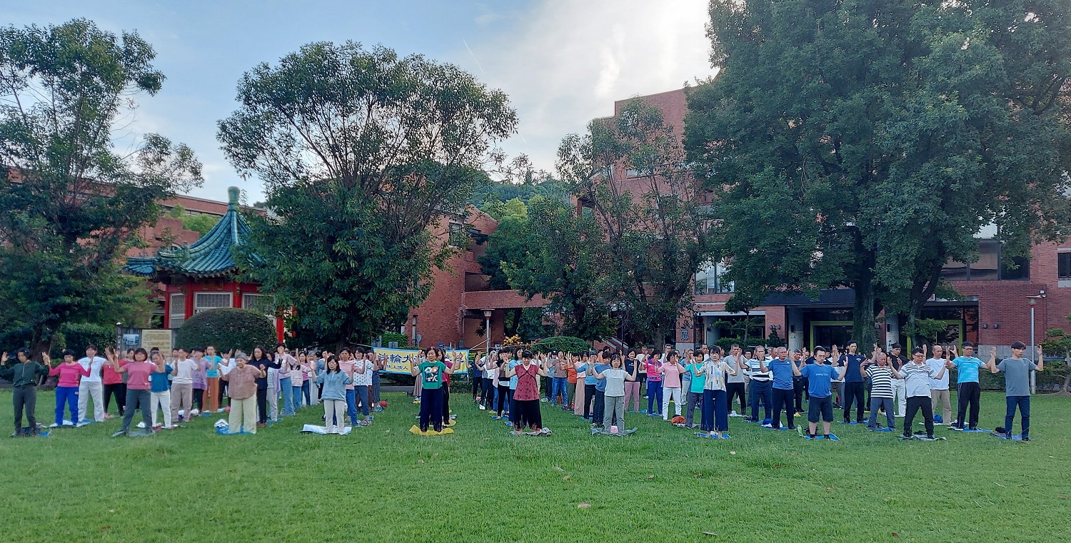 ![]() 图1~2:二零二三年七月三十日清晨,来自台湾各地的法轮功义务辅导员在台北剑潭青年活动中心集体炼功。 |