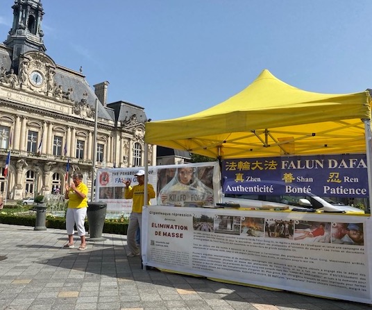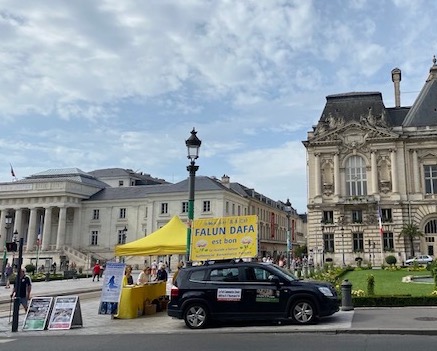 ![]() 图1:法轮功学员在法国卢瓦尔河畔城市图尔(Tours)市政厅广场举办信息日活动。 |