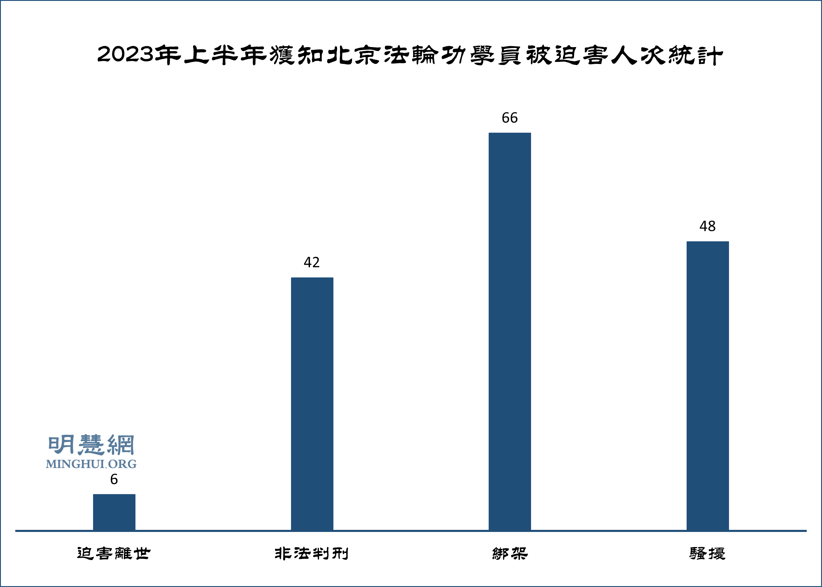 ![]() 图1:2023年上半年获知北京法轮功学员被迫害人次统计 |