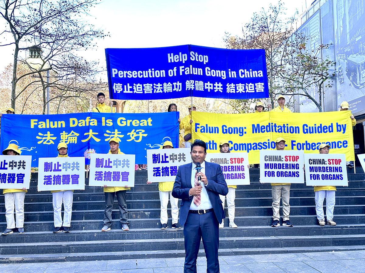 新南威尔州太平绅士、霍恩斯比郡议员皮拉马里(Cr Sreeni Pillamarri,Hornsby Shire Council Councillor,JP NSW)表示:“从一九九九年到今天整整二十四年的时间里,法轮功学员一直在坚持不懈地向全世界讲述真相,他们已经赢得了全世界的好评和支持,我觉得中共政权需要清醒的看到这一事实,并且立刻停止对法轮功学员的迫害,包括停止活摘他们的器官。”