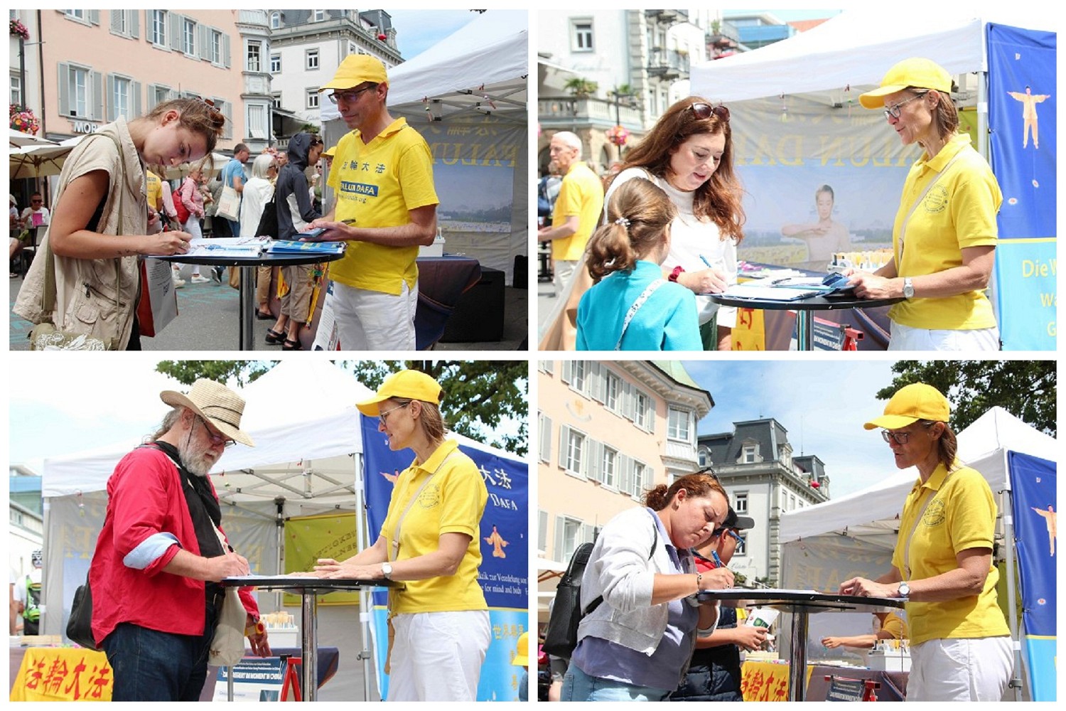 在康斯坦茨人们也纷纷签名制止中共迫害法轮功的罪行。来自保加利亚的斯拉维娅(Slaveya)在签名后说:“我希望制止这场(中共的)罪恶,人们不再受到迫害。那些迫害者才应该进监狱。”