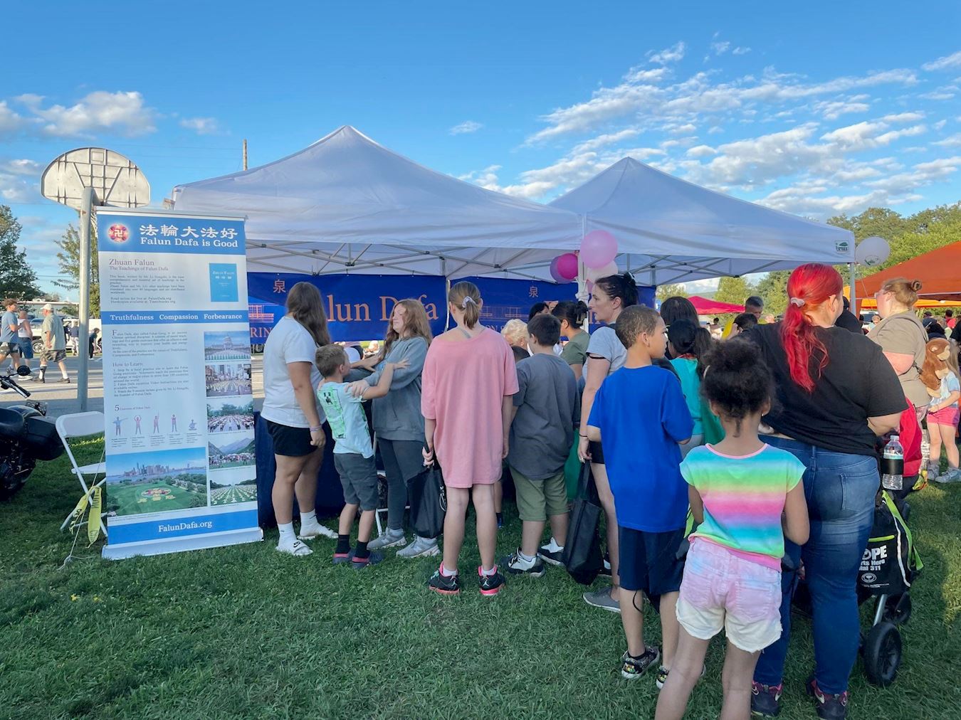 ![]() 图1~2:二零二三年八月一日,纽约部分法轮功学员参加 “全美打击犯罪夜”(National Night Out)的活动,向社区居民演示五套功法,传递法轮大法的美好。 |
