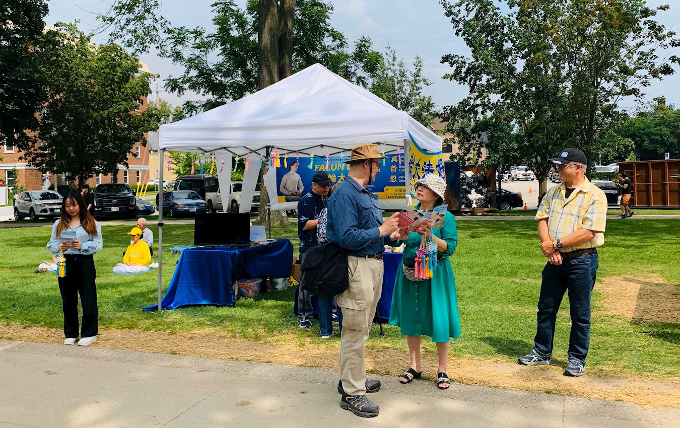 奔萨(Benza)曾听说过法轮功遭受的迫害。这次活动,他在公园里看到法轮功学员的展位,走过来询问迫害是否仍在发生。