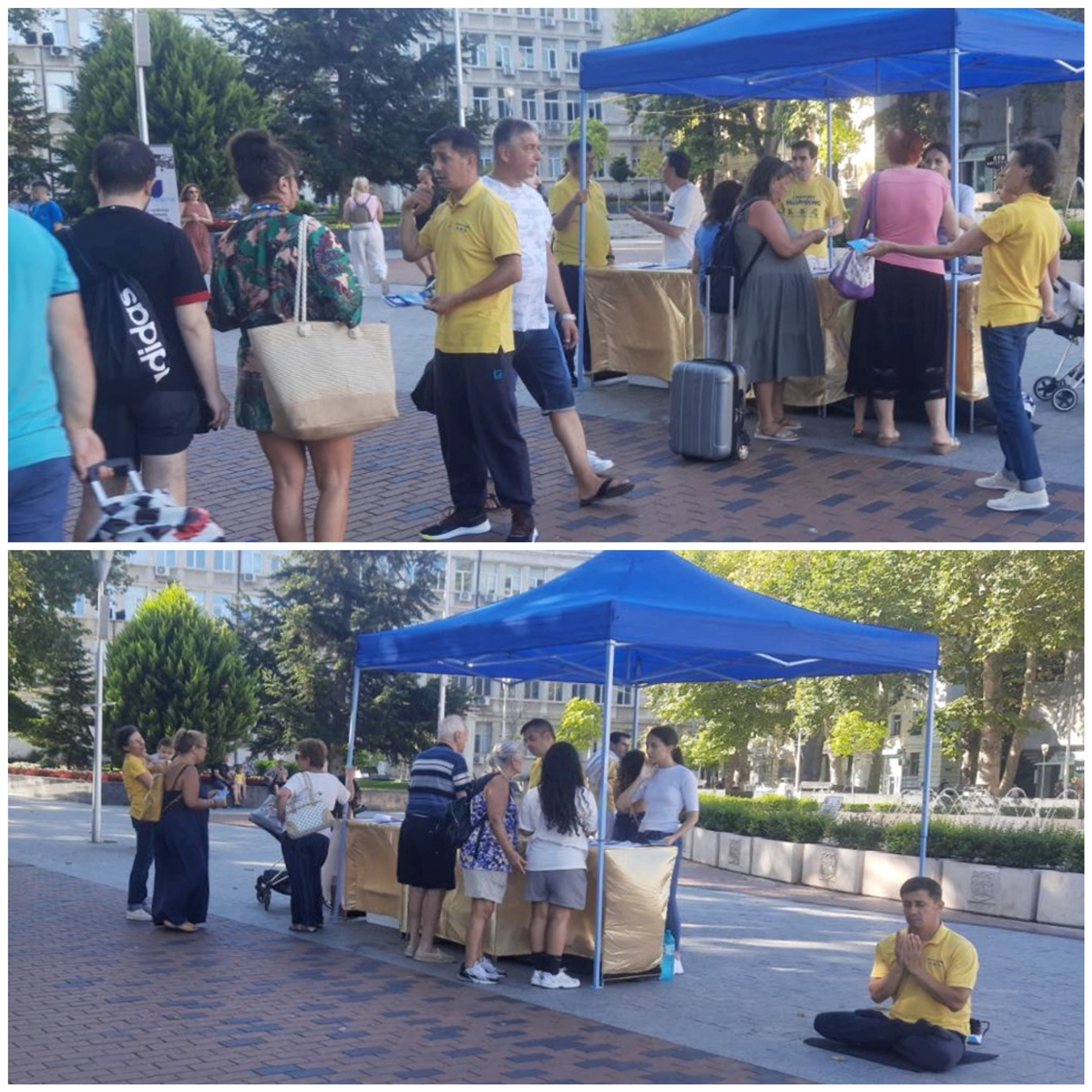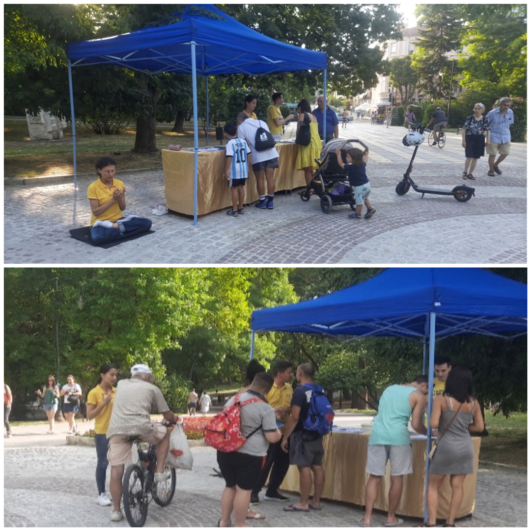 ![]() 图1:八月五日,法轮功学员在保加利亚瓦尔纳(Varna)歌剧院附近的中心地区举办信息日活动。 |