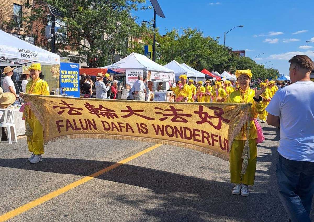 活动第一天,主办方还安排了游行,由法轮功学员组成的腰鼓队也应邀参加。喜庆的腰鼓声,麦穗色的“法轮大法好”横幅,让来往的人们领略了来自中国的传统文化。