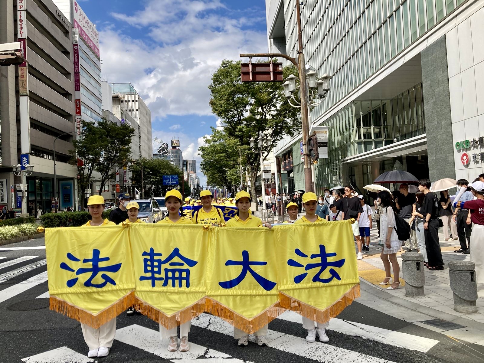 名古屋是在日本排名第三的大城市,现在人口有二百三十万人,也生活着很多外国人,是一座国际大都市。下午,法轮功学员们在名古屋市中心的繁华地段荣附近进行了两个多小时的游行。