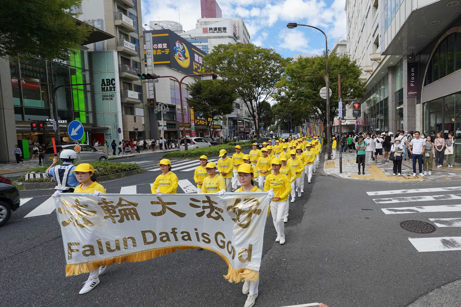 游行活动从荣公园出发,途径日本著名的三越(Mitsukoshi)、松坂屋(Matsuzakaya)等大型百货店聚集的大津通(Otsu-Dori)商店街、大须(Osu)等华人经常出入的地方,还有休息时人们经常逗留的久屋公园(Hisaya-Park)西侧大道。游行所到之处,很多过往民众驻足观看,并来了解法轮大法。有很多市民在听了法轮功学员的介绍后,鼓励学员们:“加油!”“请继续加油!”还有的市民说:“爱知县(Aichi)人民支持法轮功!加油!”