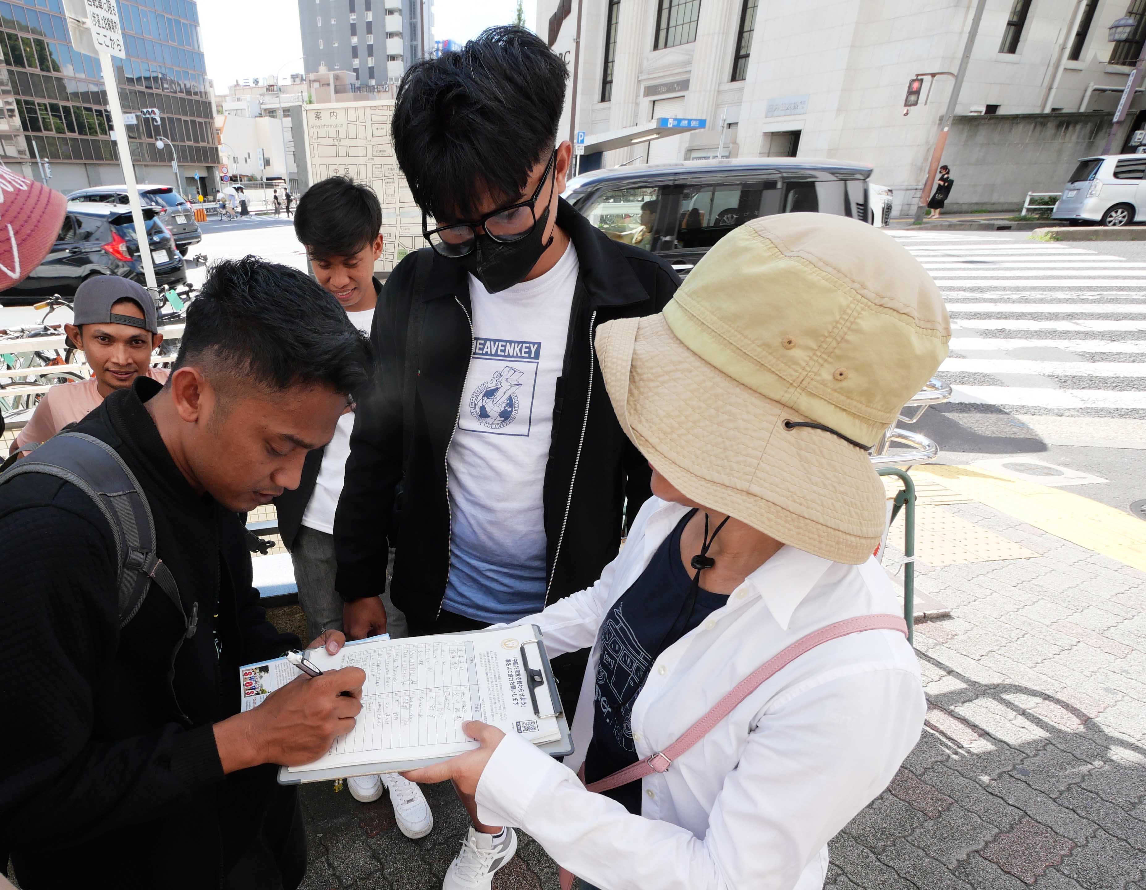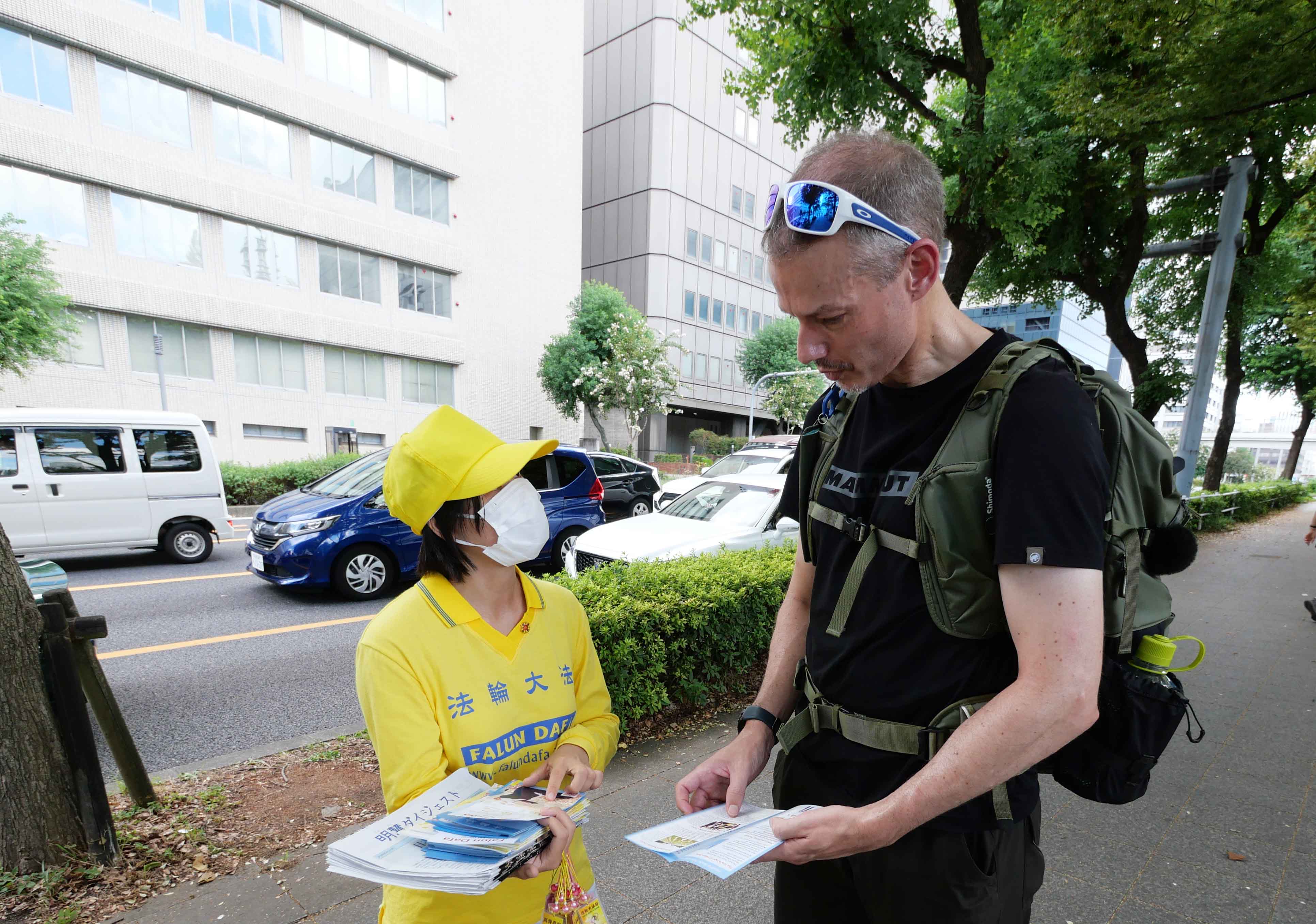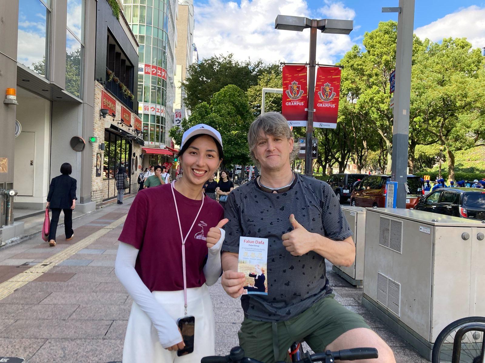 来名古屋打工的隼人先生说:“(法轮功学员)遭受如此无辜的迫害一定很艰难,请继续加油。”