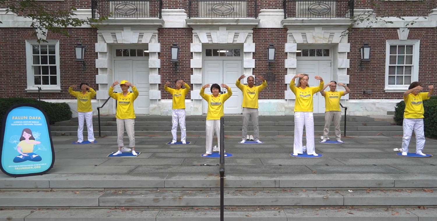 ![]() 图1~2:二零二三年九月十七日,一年一度的纽瓦克社区日在特拉华大学主校园举办。法轮功学员在表演法轮功功法。 |