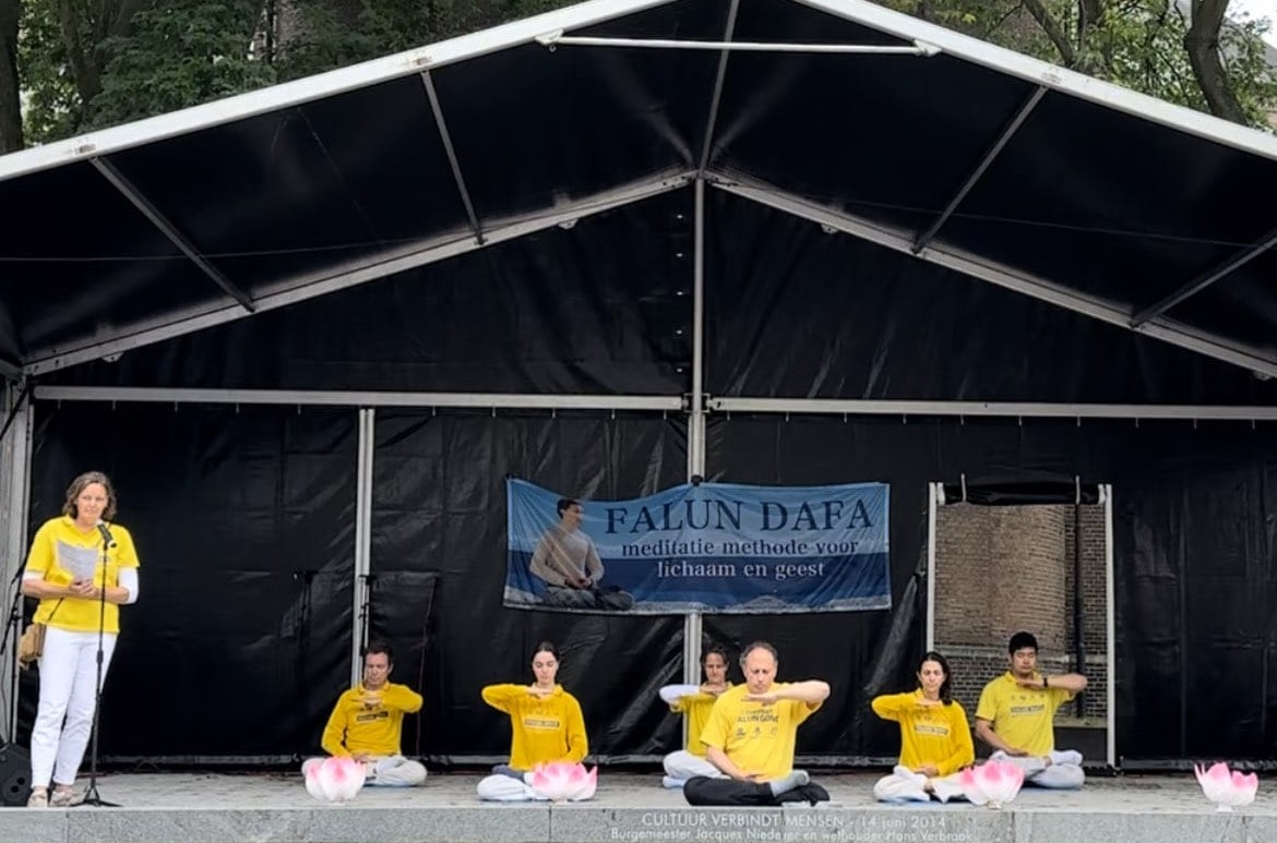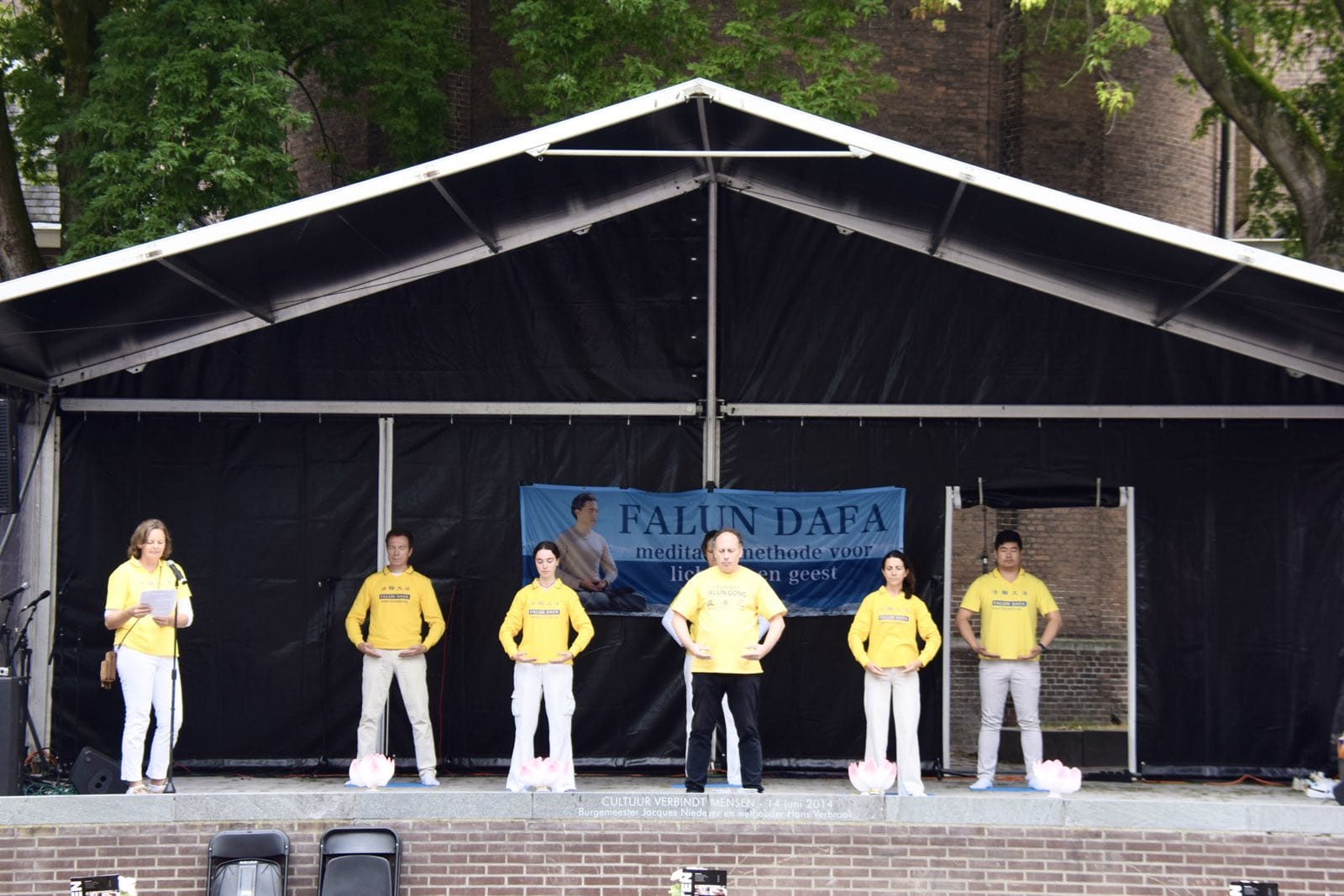罗森达尔当地的法轮大法修炼团体也应邀参加了本次活动。这个炼功小组在当地弘法,义务教功已经有十年之久,他们每周日上午在伯格米斯特·戈德瓦尔特公园(Burgemeester Godwaldt Park)一起集体炼功。
