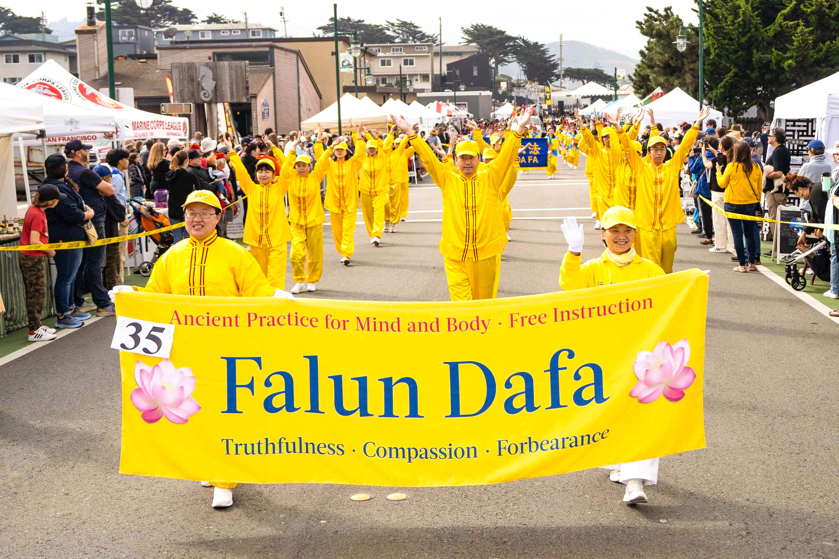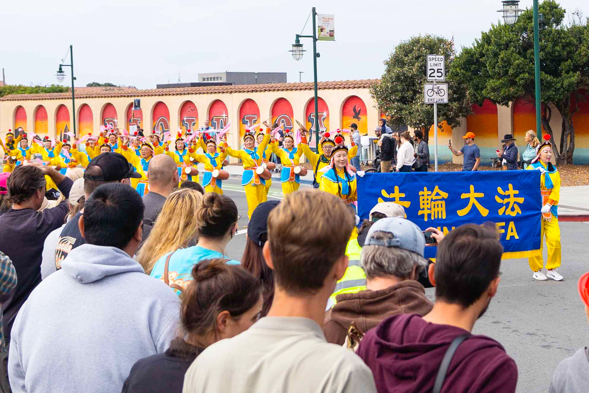 法轮功炼功队和腰鼓队参加了游行。法轮功队伍的召集人伍均祥表示,要尽量参加旧金山湾区当地的活动,把法轮功的美好带到湾区各地。
