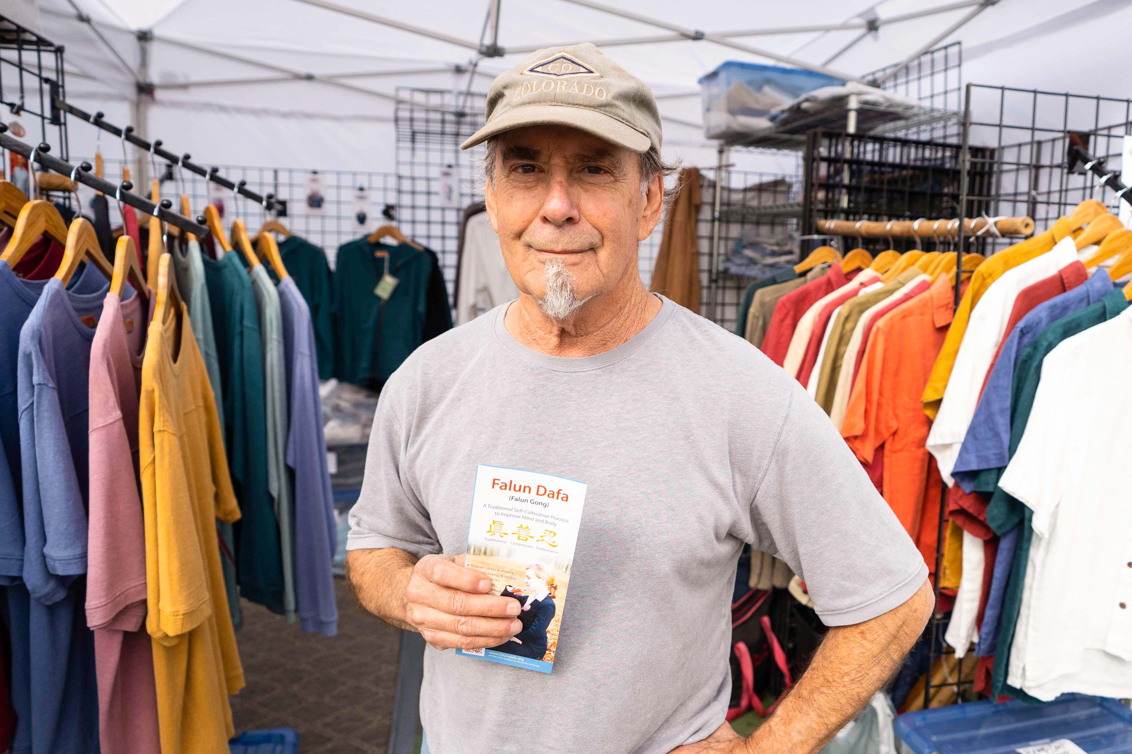 ![]() 图9:服装摊位老板理查德德表示,很高兴看到法轮功学员 |