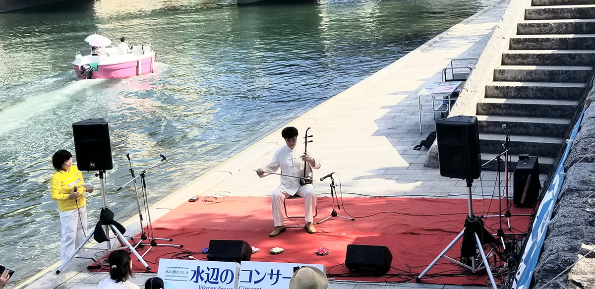 作为城市建设的一环,广岛市从二十年前开始定期在周末举办“水滨音乐会”。目的是促进市民的艺术和文化活动,在海滨创造城市乐趣。因为舞台设在和平公园的原子弹被爆遗址的河对岸,“水滨音乐会”不但家喻户晓,也成为了“水都”之称广岛的特有风物诗。