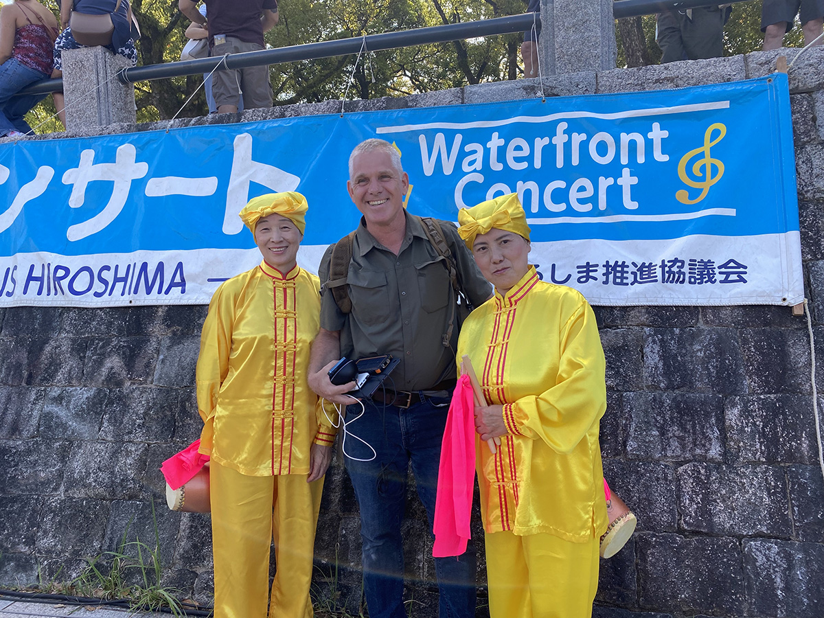 其中一位来自荷兰的爱德华(Eduard)先生,在听学员讲述真相时表示:“在荷兰听说过法轮功,也知道被中共迫害的事,对一个人来说最重要的就是信仰自由。”爱德华先生在学员们表演前就在座位等着并从头看到尾。演出结束后,他竖起大拇指夸奖学员的表演精彩,还主动邀请学员们合影做纪念。