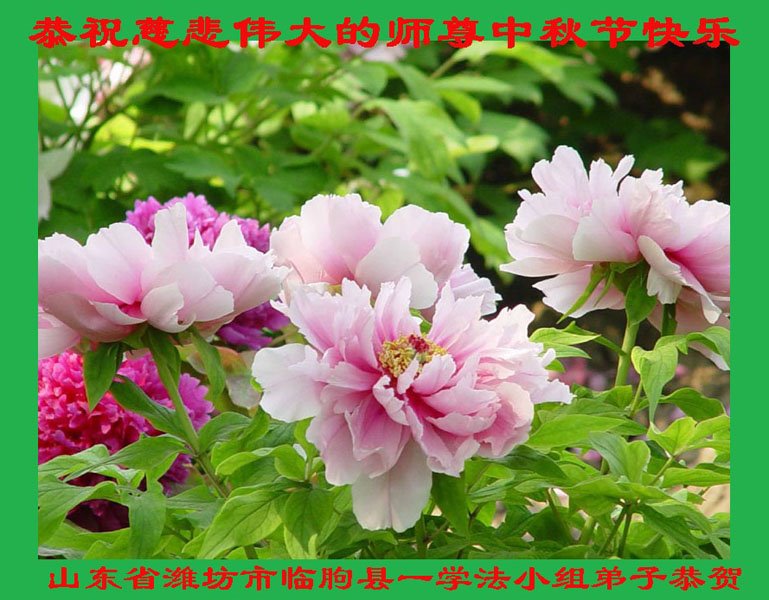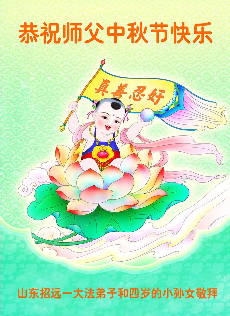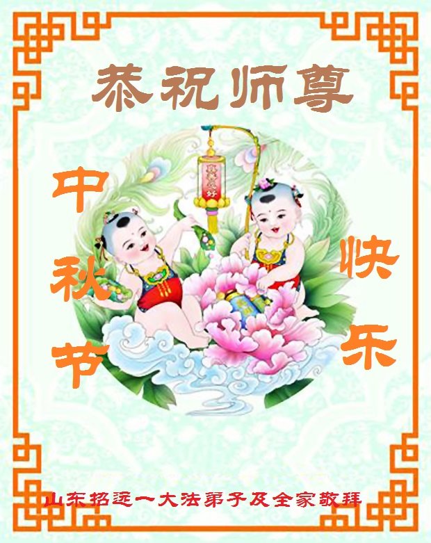 我是山东省聊城市茌平区一明白大法真相的人,家有贤妻、两个儿子、四个孙子。我读书不多,也没多大本事,但二十多年来,我全家老幼身体健康、阳光、好运连连,日子过的红红火火。孩子们事业有成,有车有楼,方圆十里的百姓都羡慕。为啥我家这么顺?我大声告诉世人:因我明白大法真相并做了三:退.,天天念九字真言,还保护过一位大法弟子,因此大法师父送我全家这么些福份。我们全家感动、感恩,感谢大法师父给予我全家的所有。以最真诚的心祝慈悲伟大的大法师父身体健康、万事顺利,中秋节开心快乐!