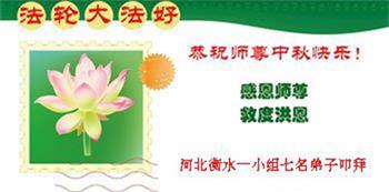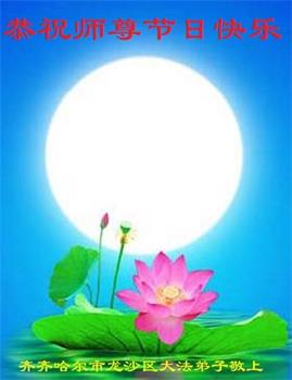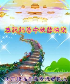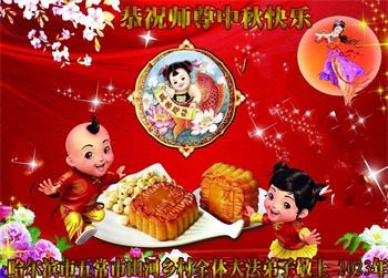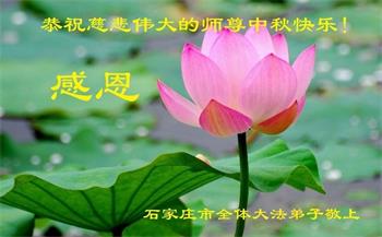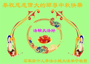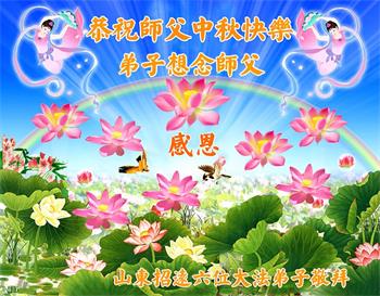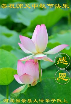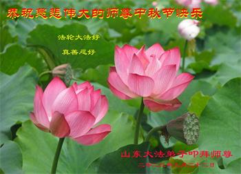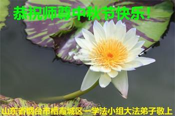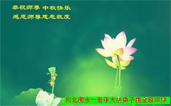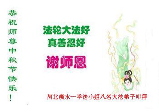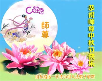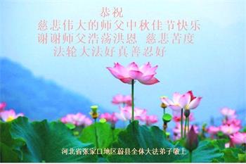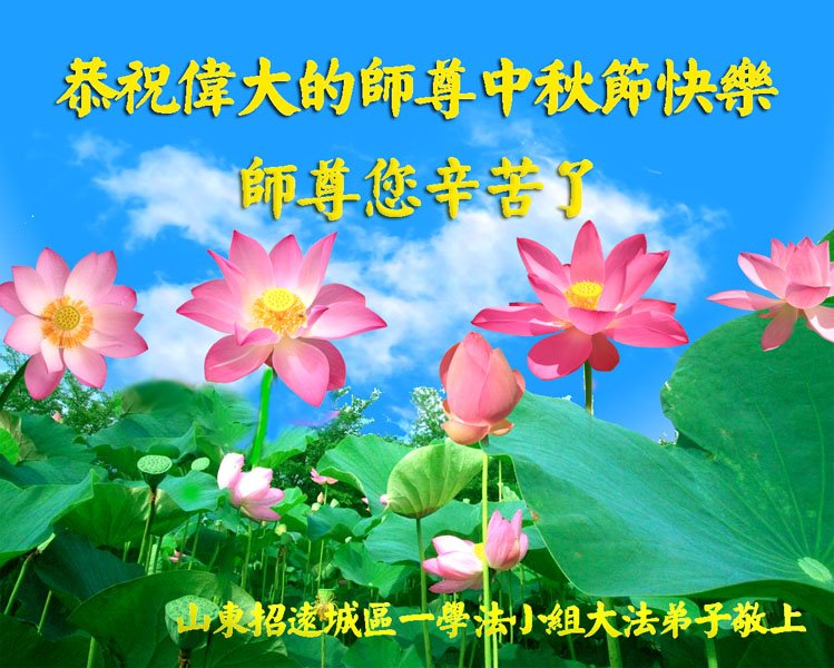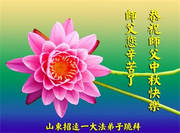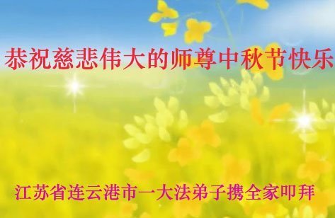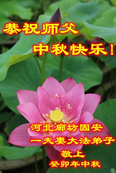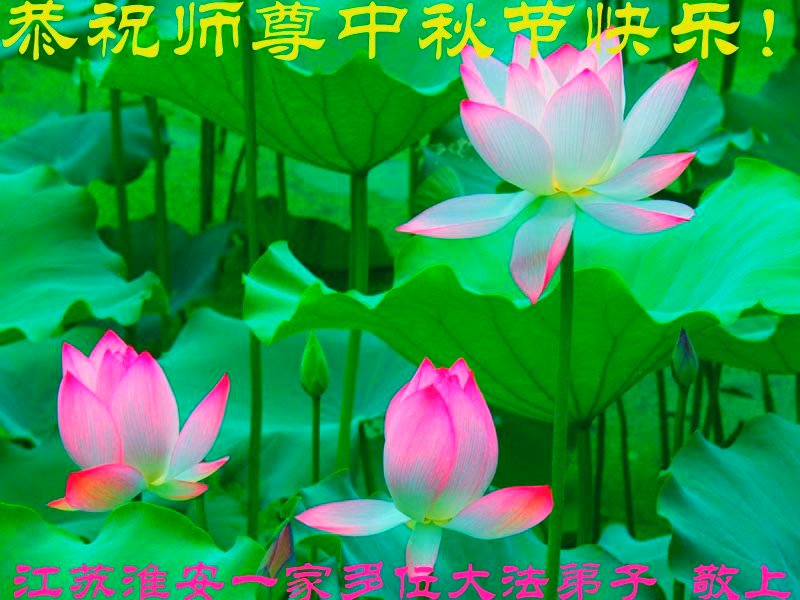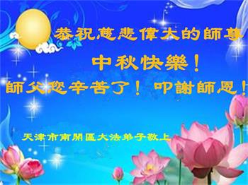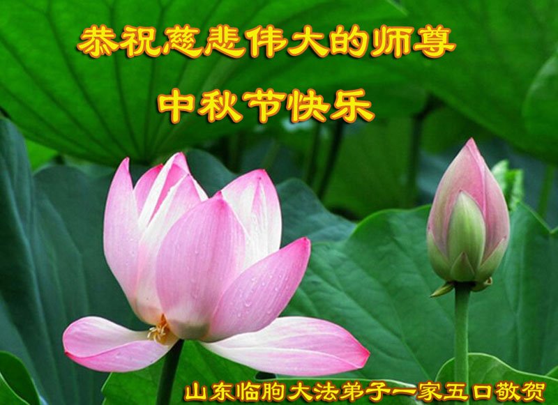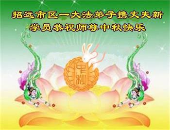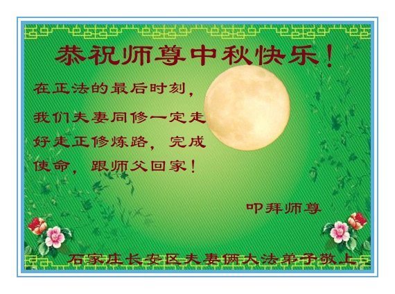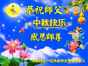 我们家还没有修炼法轮功,但是,我们全家人都知道法轮功是个好功,是教人做个好人,能使身体健康无病的。我们亲戚有炼法轮功的,邻居也有炼的。他们修炼后,变化都很大,是大家公认的好人。这些年,打压这么厉害的情况下,他们不怕死,不怕抓,仍然坚定的修炼法轮功,我们从心里佩服,现在社会上这样的人不多。都是李大师好,才能教育出这么些好徒弟。这些年,因为我们相信法轮功好,帮助法轮功学员躲避迫害,也得到李大师的保护,全家老少身心健康,工作顺利,生活的幸福快乐!我们从心里感谢李大师的恩情。我们全家人恭祝李大师中秋节快乐!李大师您辛苦了!
