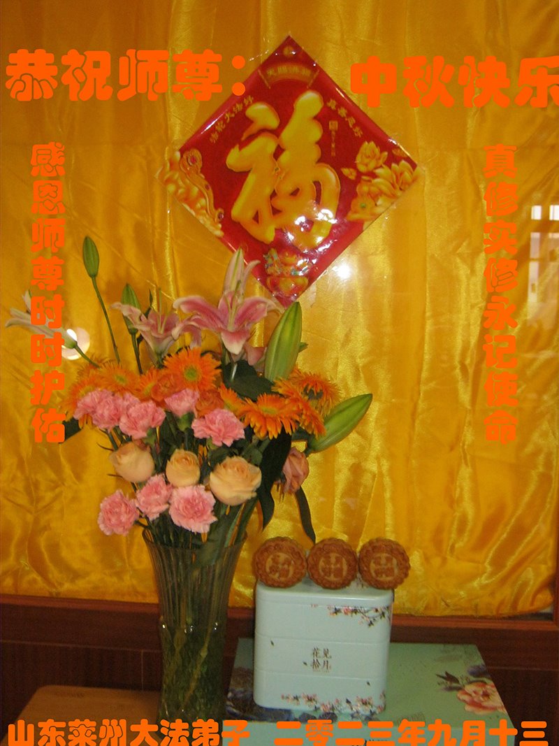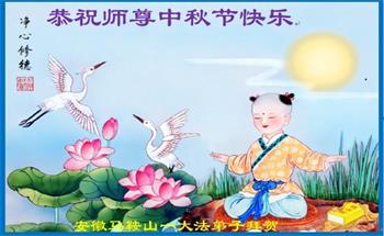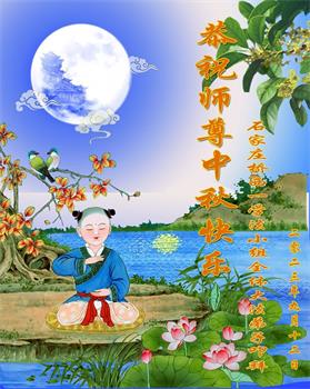 路途遥远,我没有办法给师父送上一盒精美的月饼表达敬意,唯有按照师父法的要求真修、实修,把心修的干干净净,带给慈悲苦度我的师父一些欣慰,惟愿师尊笑!弟子盼师尊早日回国和大陆弟子过一个团圆的中秋节!