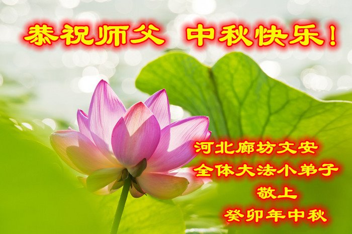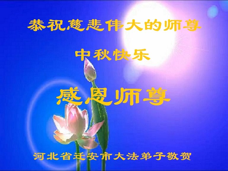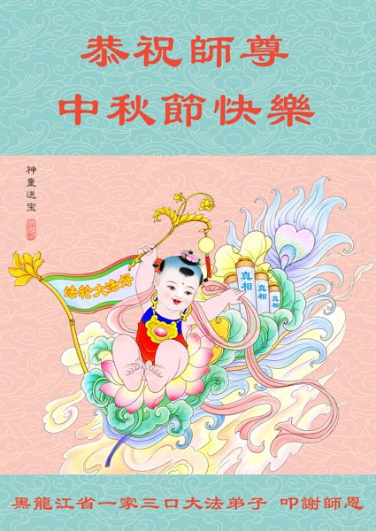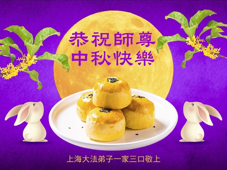 在华北油田工作的一位大法弟子携全家叩拜师父中秋快乐!他表示:“路途遥远,我没有办法给师父送上一盒精美的月饼表达敬意,唯有按照师父的要求真修、实修,给慈悲苦度我的师父一些欣慰!”