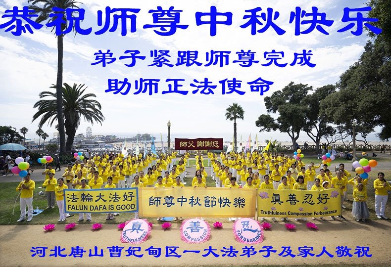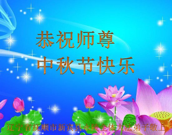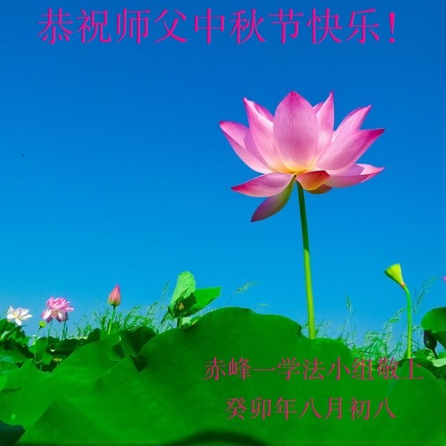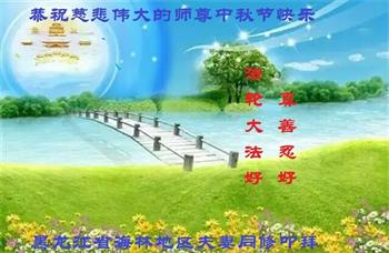 值此中秋佳节,辽宁丹东医疗系统大法弟子向伟大慈悲的师父问好!恭祝师父中秋节快乐!弟子想念师父!师父辛苦了!感恩师父慈悲救度,师恩难报!我们唯有精進。叩拜师尊!