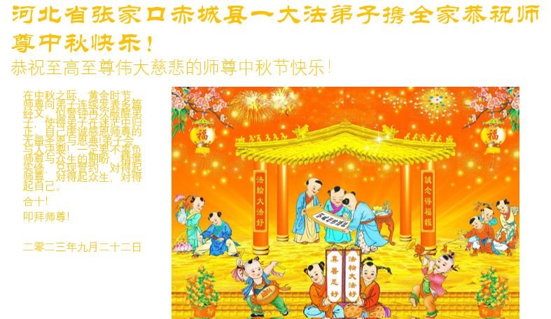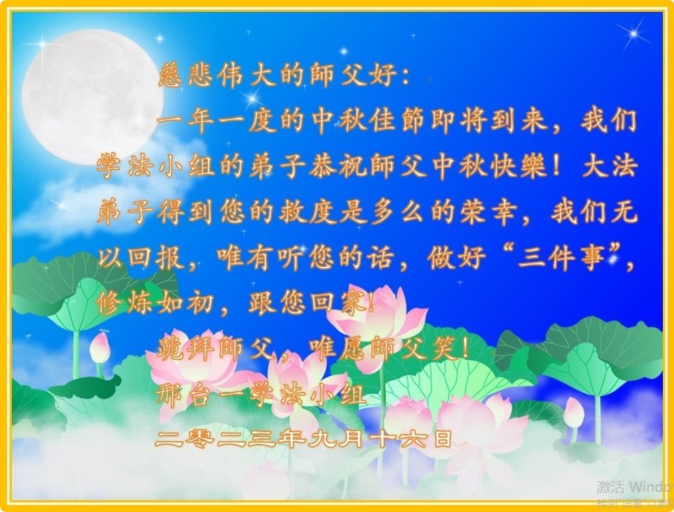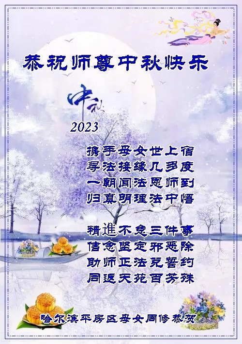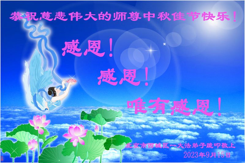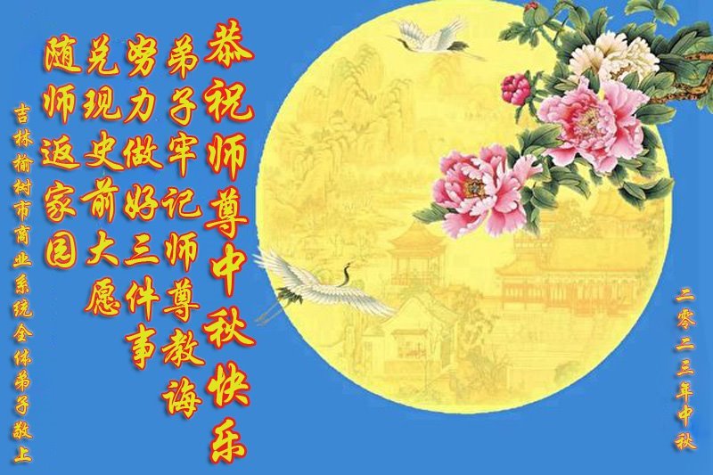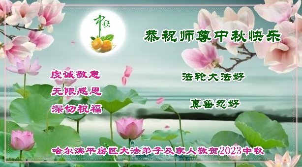 <英文版: https://en.d2s3ombhnov3zf.cloudfront.net/html/articles/2023/9/28/211655.html>中国明真相百姓恭祝大法师父中秋节快乐