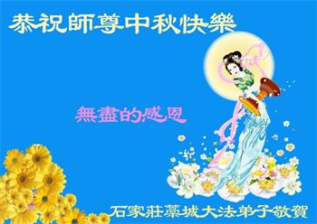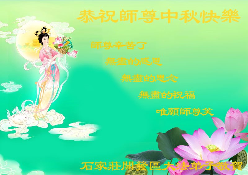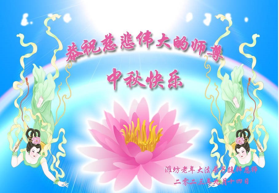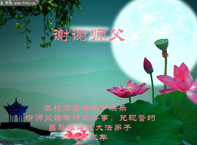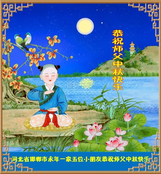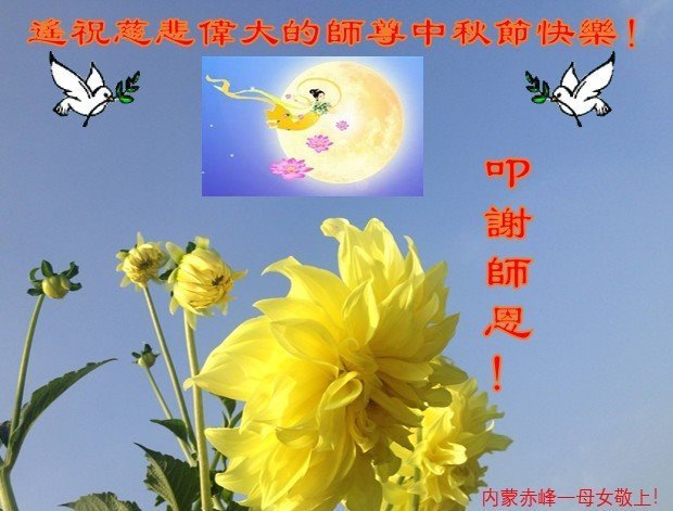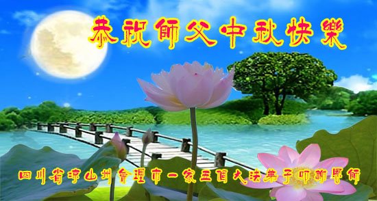 慈悲的李大师:您给人类送来了光明和希望,我们永远感恩法轮大法、感恩李大师。我们衷心的祝您中秋快乐!
