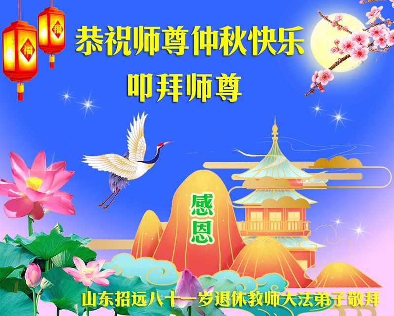我是大法弟子家人,今年七十七岁,我支持大法弟子救人,更感恩大法师父多次将我从危难的疾病中救下。我无以表达自己对大法、对大法师父的感恩心情,借此中秋佳节之机,也代表和我怀有同样心情的家属向慈悲伟大的师父送上我们最诚挚的祝福:恭祝师父中秋快乐!