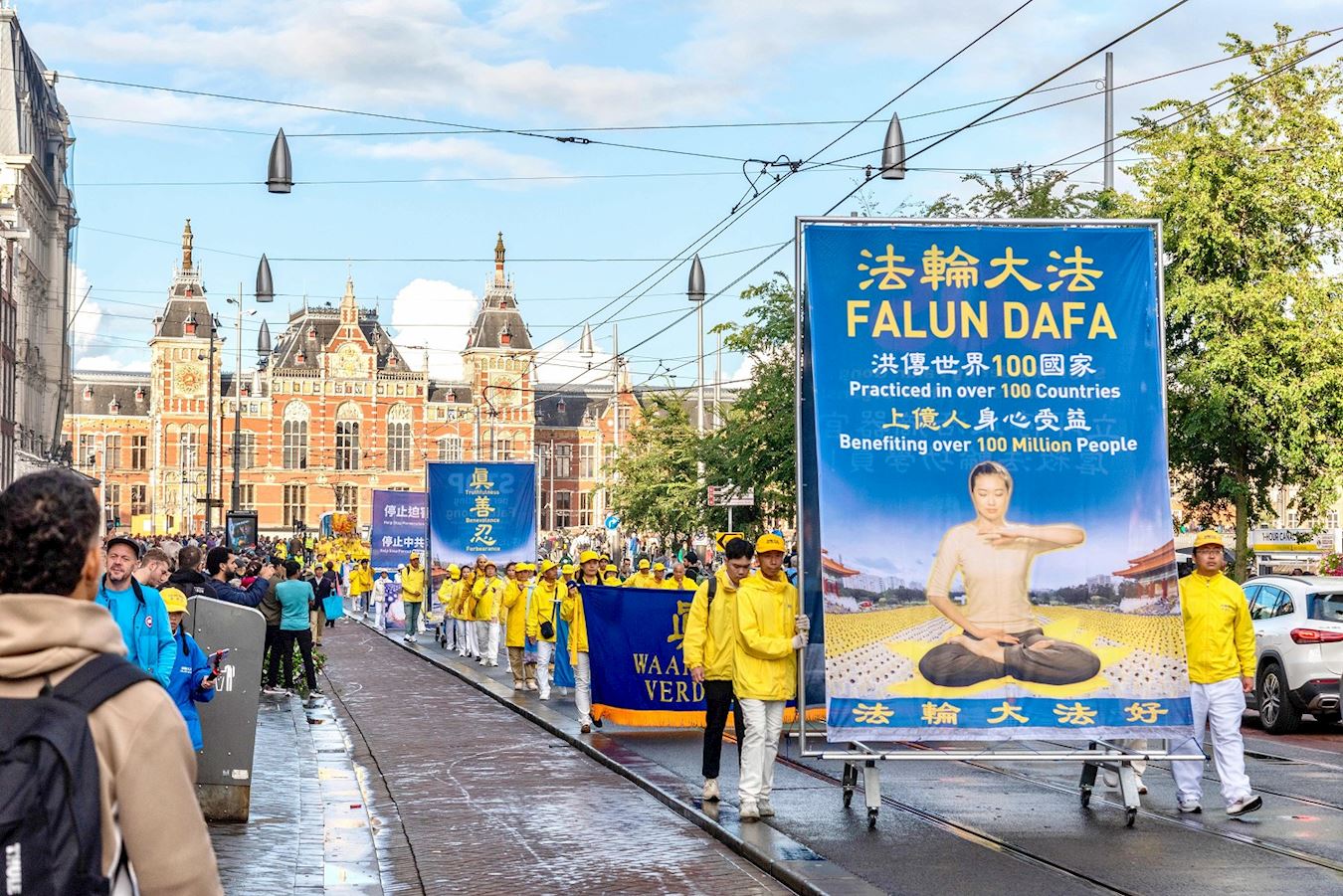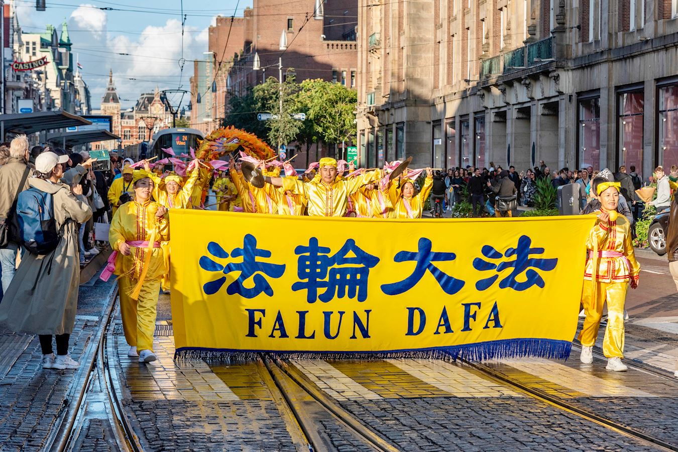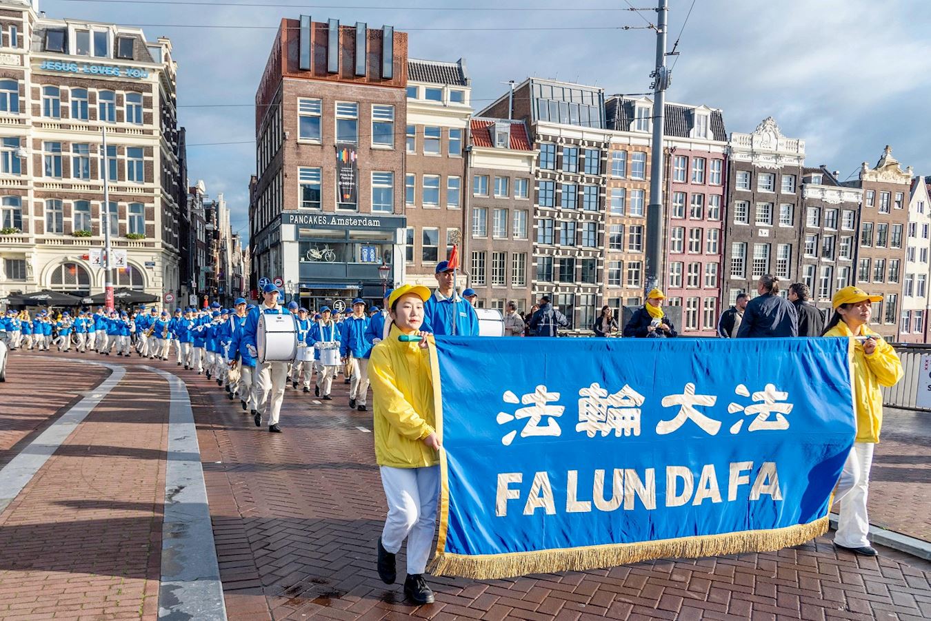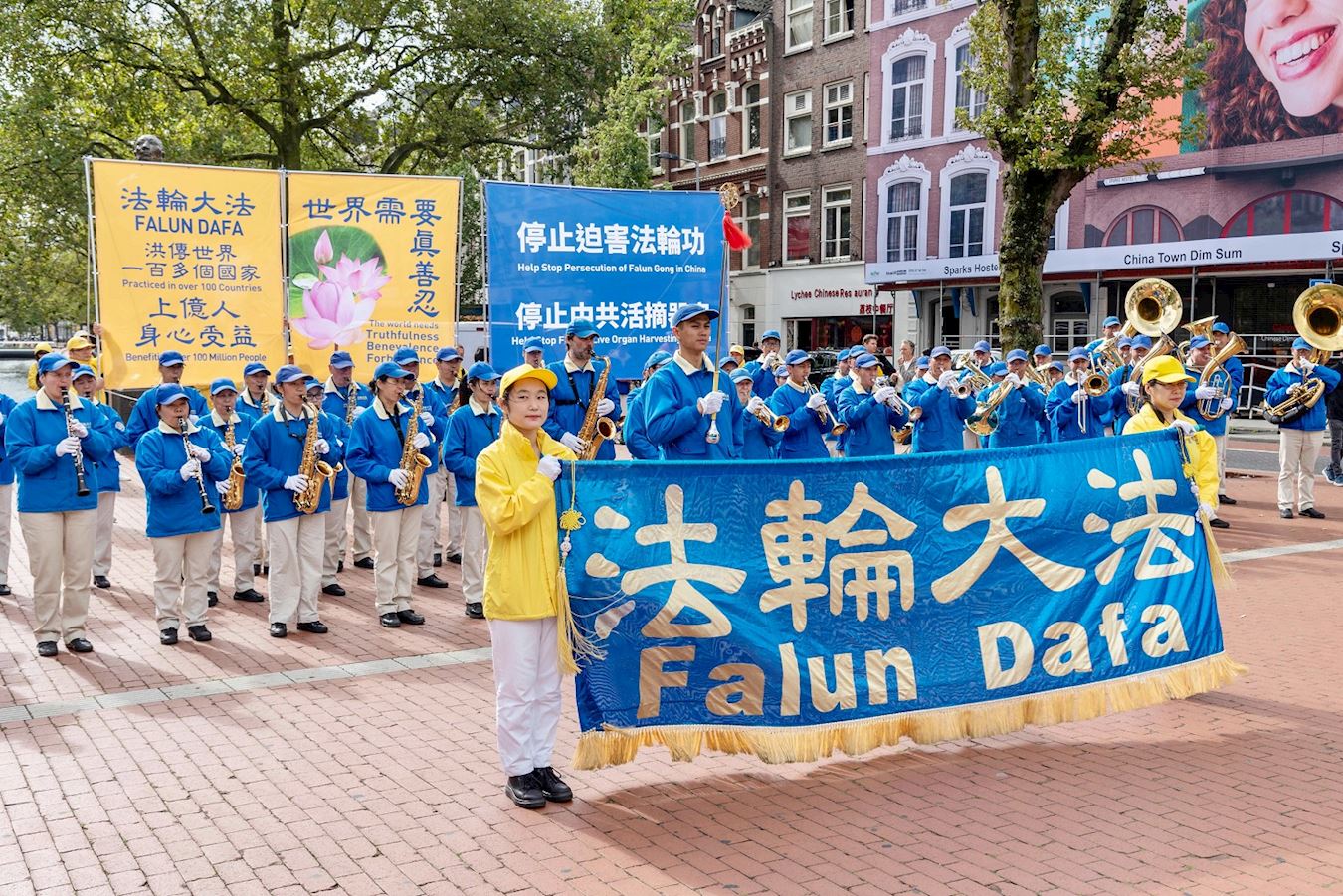 当天,欧洲多国法轮功学员来到荷兰两大城市——首都阿姆斯特丹及鹿特丹,通过天国乐团的演奏、集会和游行等活动向当地民众呈现大法的美好,同时也告诉世人,二十四年来中共残忍迫害法轮功学员,呼吁大家共同制止迫害,制止中共活摘法轮功学员器官的罪行。