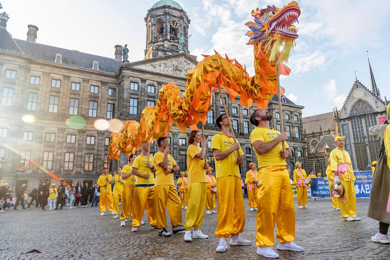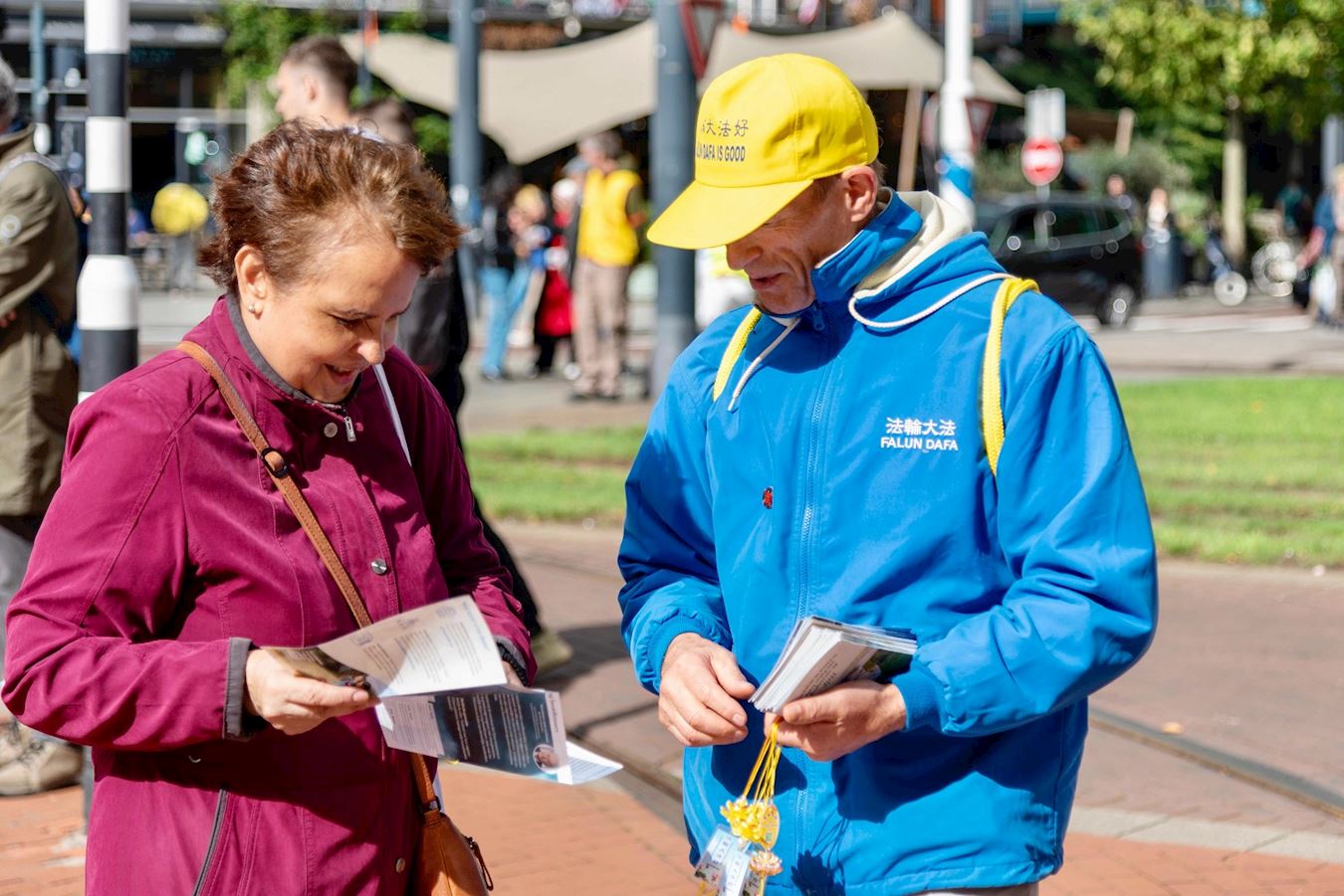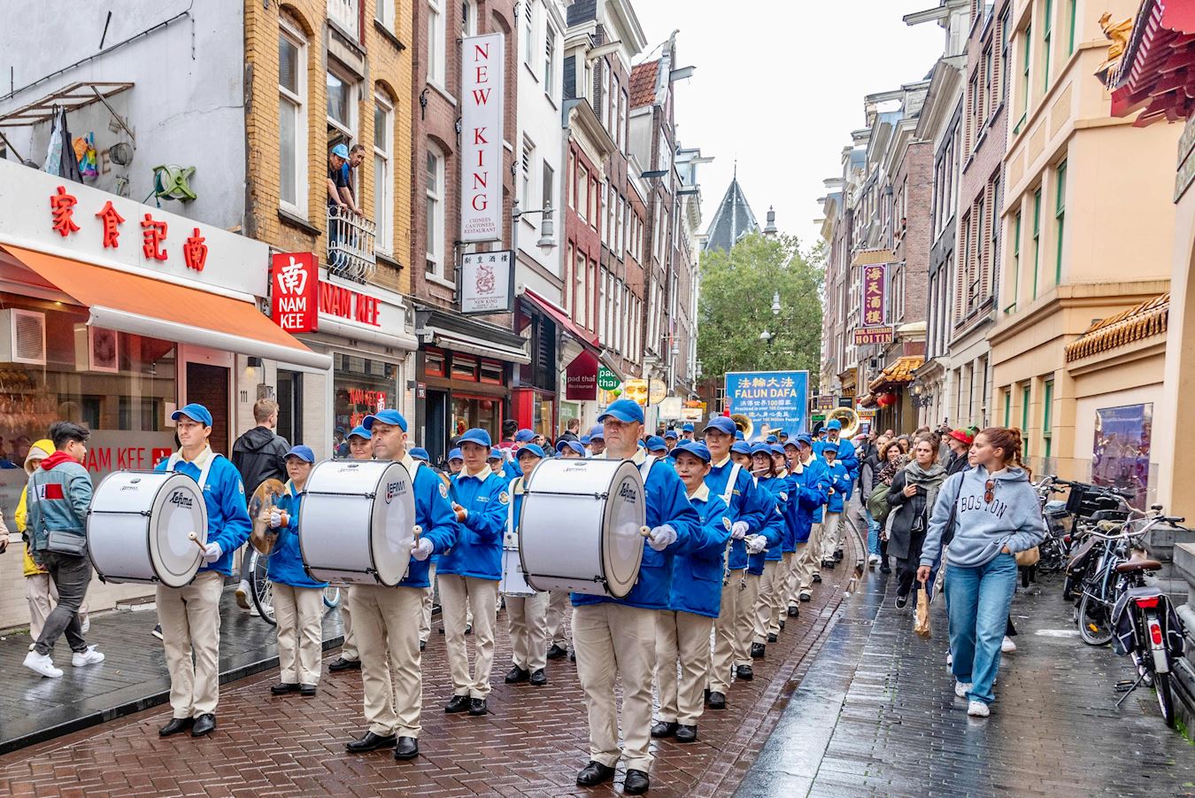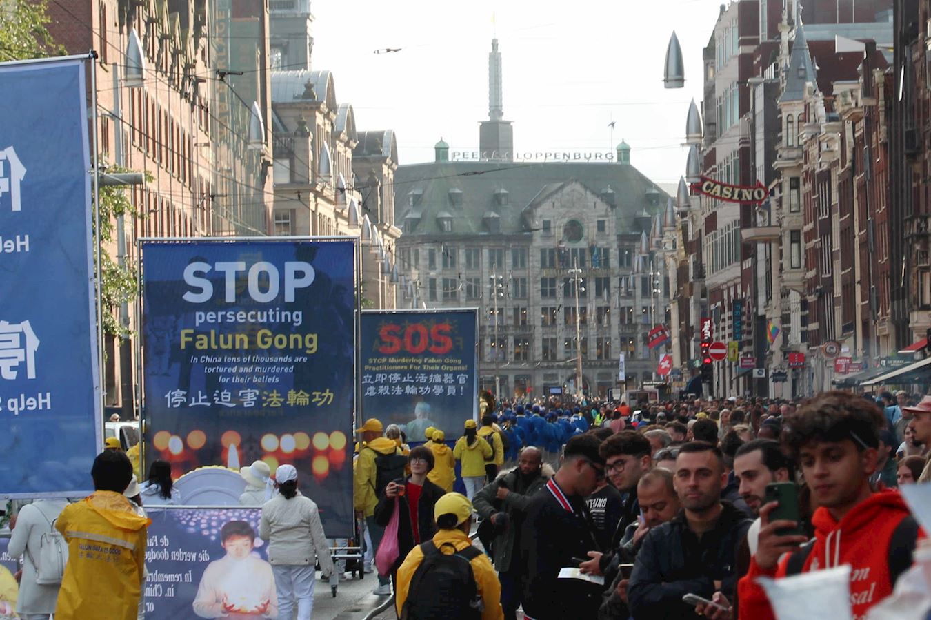 当天,欧洲多国法轮功学员来到荷兰两大城市——首都阿姆斯特丹及鹿特丹,通过天国乐团的演奏、集会和游行等活动向当地民众呈现大法的美好,同时也告诉世人,二十四年来中共残忍迫害法轮功学员,呼吁大家共同制止迫害,制止中共活摘法轮功学员器官的罪行。