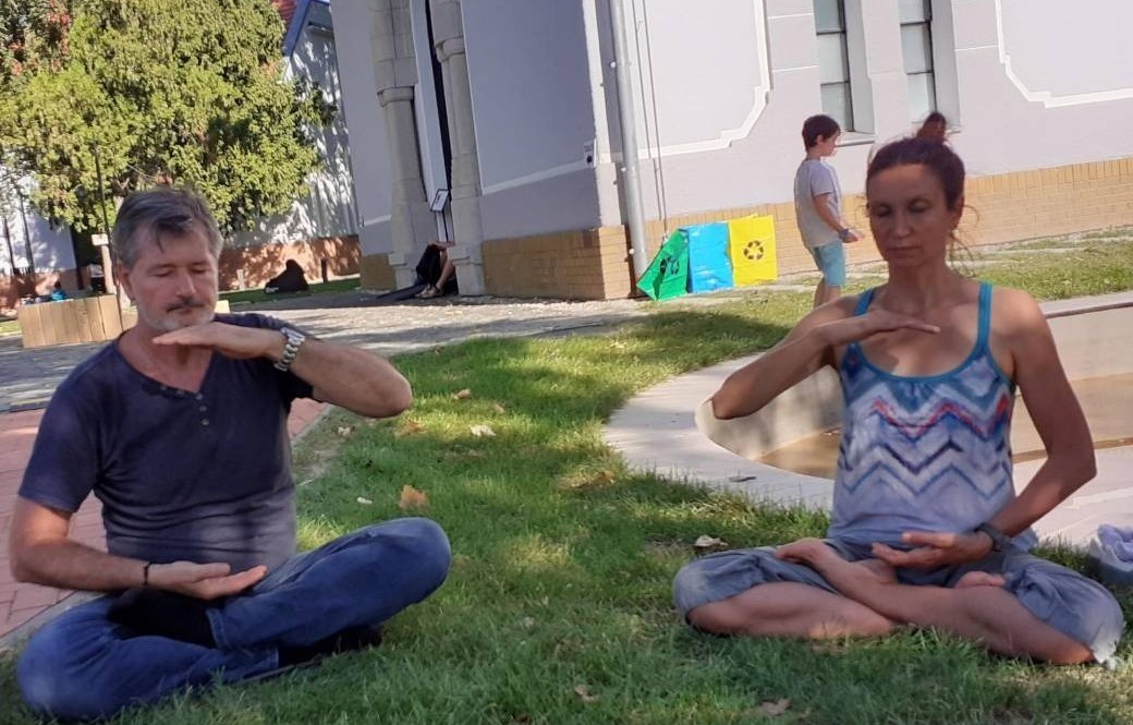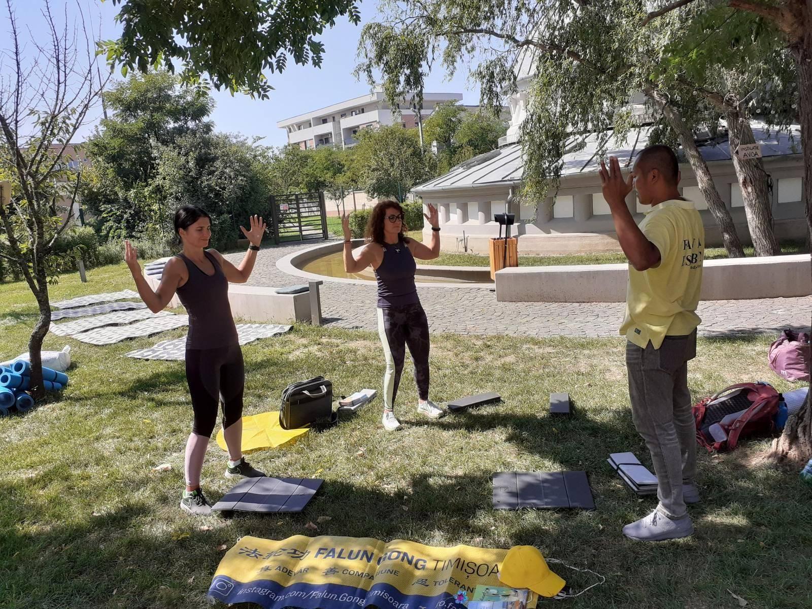 ![]() 图1~4:民众在蒂米什瓦拉普莱节上学炼法轮功。 |