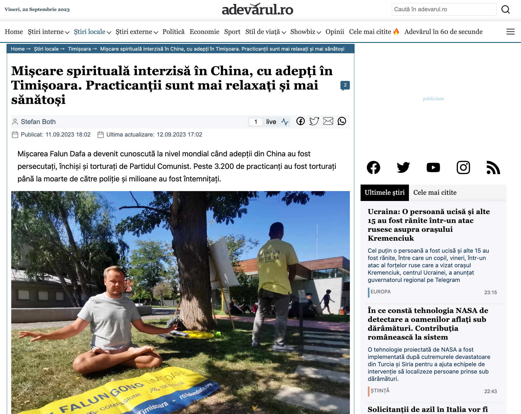 《阿德瓦鲁尔报》(Adevărul)是罗马尼亚历史最悠久、最有影响力的报纸的之一,该报采访了修炼法轮功十五年的学员博格丹·弗洛雷斯库(Bogdan Florescu)。弗洛雷斯库说,修炼法轮大法之前,他和许多年轻人一样,追逐金钱名利,却不知道这样做的意义在哪里。修炼大法后,他的世界观完全发生了变化。