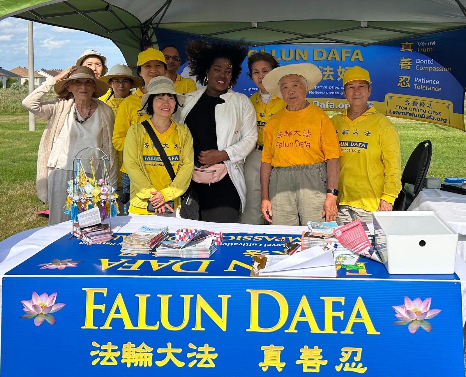 ![]() 图2:多元文化节主办人伊薇特·阿希里(Yvette Ashiri)和法轮功学员们合影。 |
